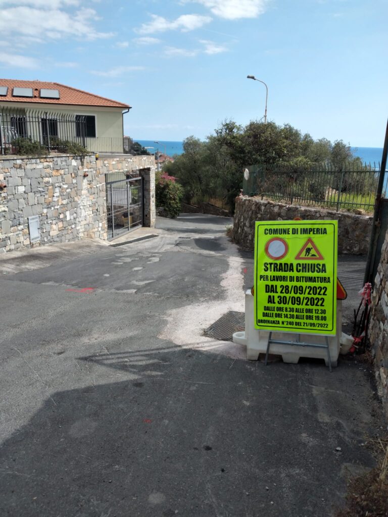 “Informiamo i cittadini che dal 28 al 30 settembre il primo tratto di VIA POGGI e SALITA AICARDI saranno chiusi al traffico dalle 8.30 alle 12.30 e dalle 14.30 alle 19, per effettuare i primi interventi di asfaltatura.