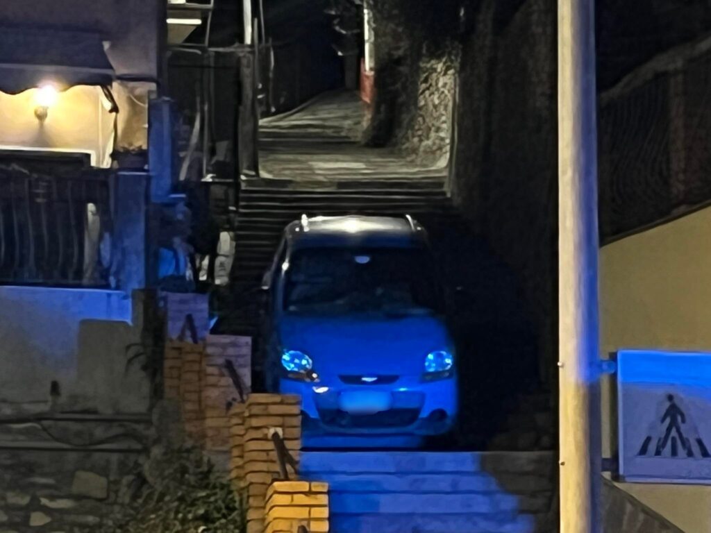 L’auto è rimasta incastrata lungo la scalinata denominata Salita Santa Maria Maggiore