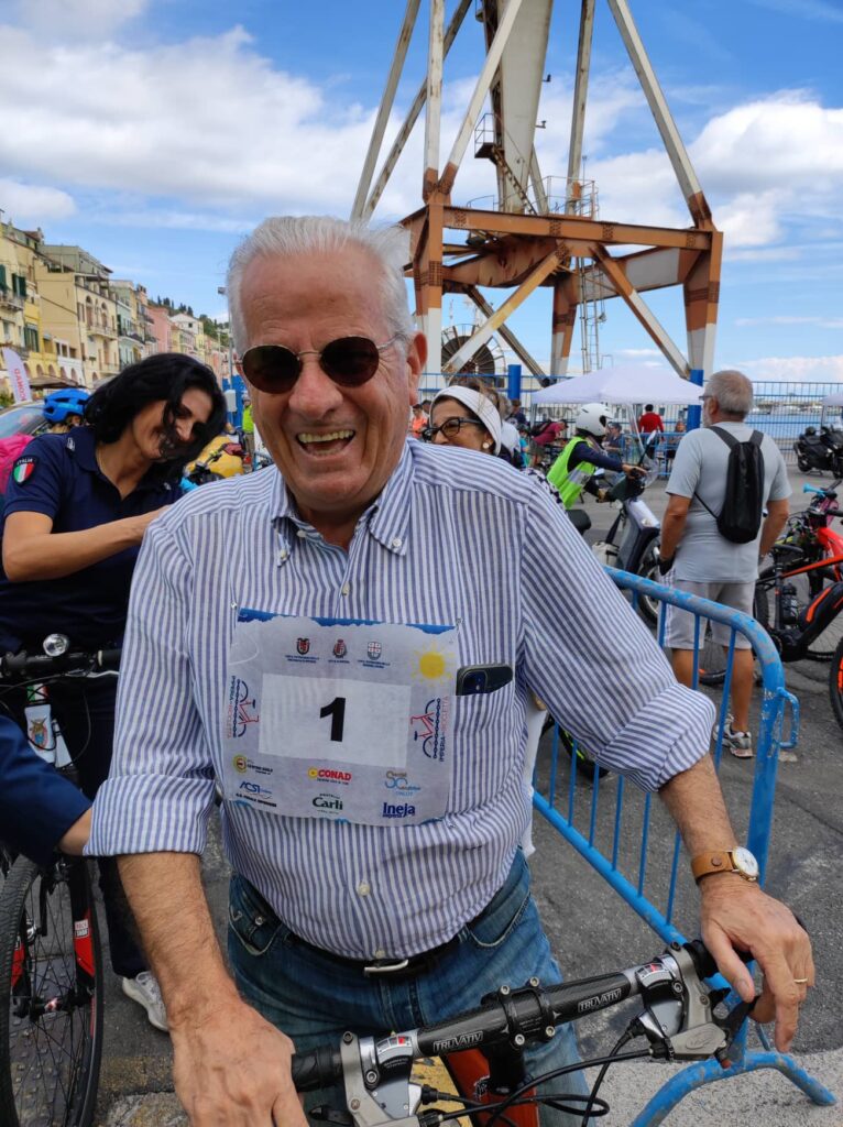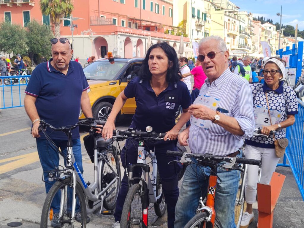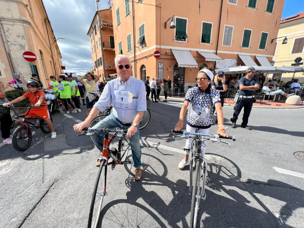 Fra i “ciclisti”, il sindaco Claudio Scajola, in sella a una splendida Colnago, la moglie Maria Teresa Verda e l’assessore allo Sport Simone Vassallo.