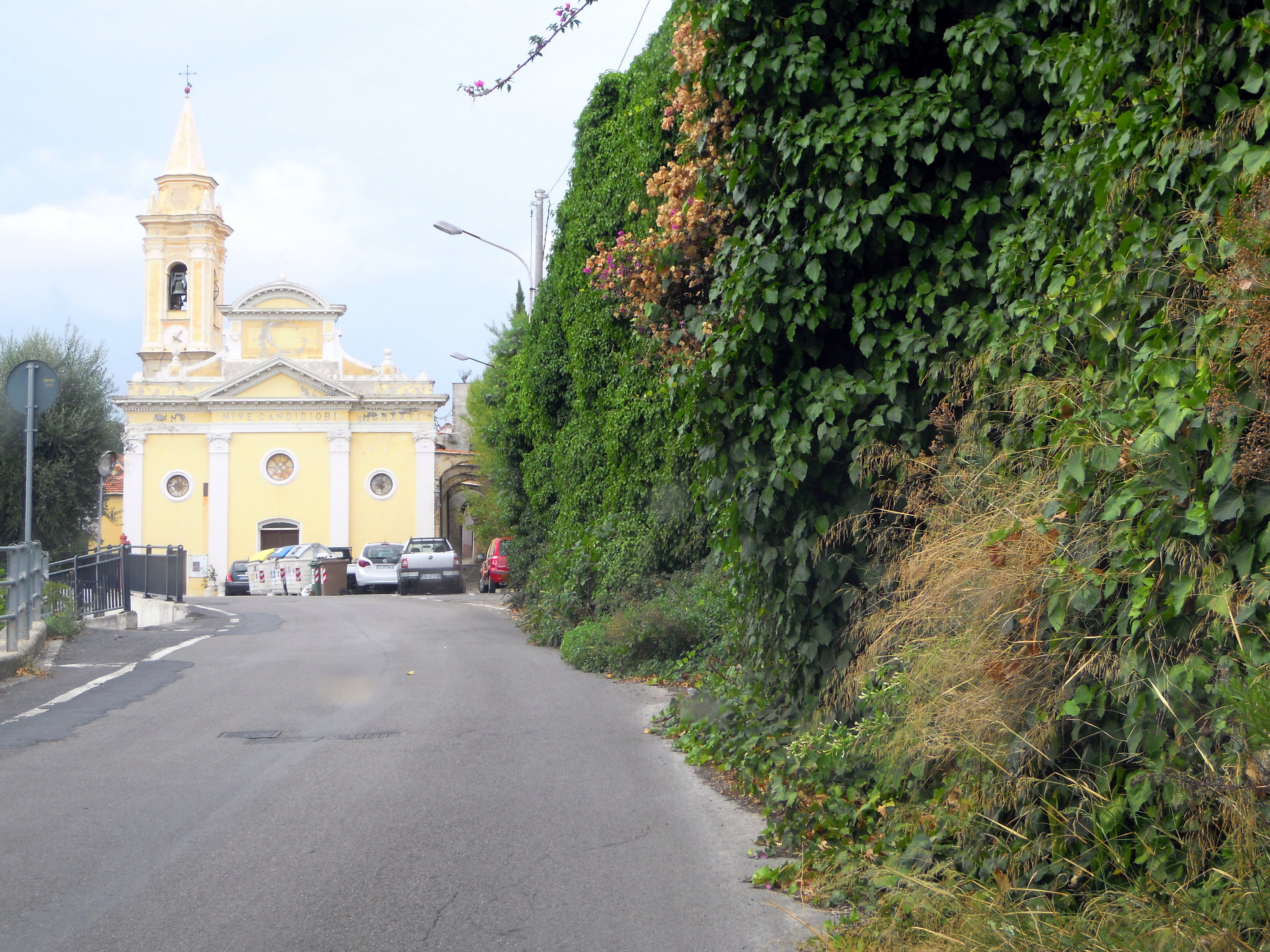 - Pairola è una delle frazioni di entroterra sulle quali l’Amministrazione Comunale in carica asserisce di voler puntare per il rilancio dell’economia locale. Arrivando a Pairola turisti e residenti sono accolti da una “muraglia verde” che fagocita la sede stradale creando considerevoli restringimenti, peraltro presenti lungo tutto il tracciato di Via Pairola. Il benvenuto in paese è affidato ad una bella sfilata di cassonetti della spazzatura (le cui condizioni versano nello stato ormai ben noto !) sistemati in modo da occupare i diversi posti auto pre-esistenti e non più agibili … Che sia un nuovo metodo di valorizzazione della Chiesa e del nucleo storico che l’affianca e noi semplici cittadini non riusciamo a capirlo ?