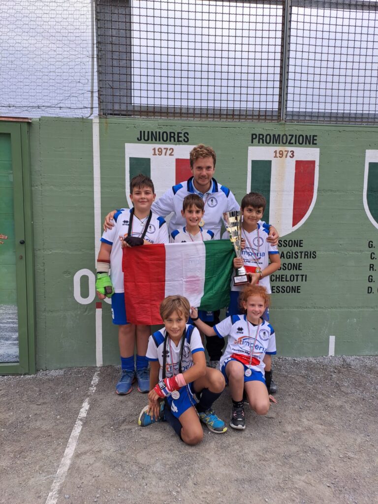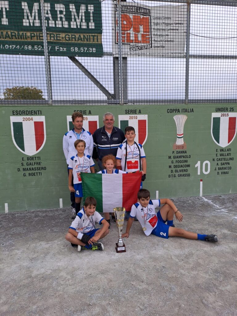 L’Asd San Leonardo di Imperia ha vinto il Campionato Italiano categoria Promozionali con una bellissima stoccata sul sei pari, vincendo 7 a 6 contro la Merlese di Mondovì allo sferisterio Alessandro Bessone di Madonna del Pasco.