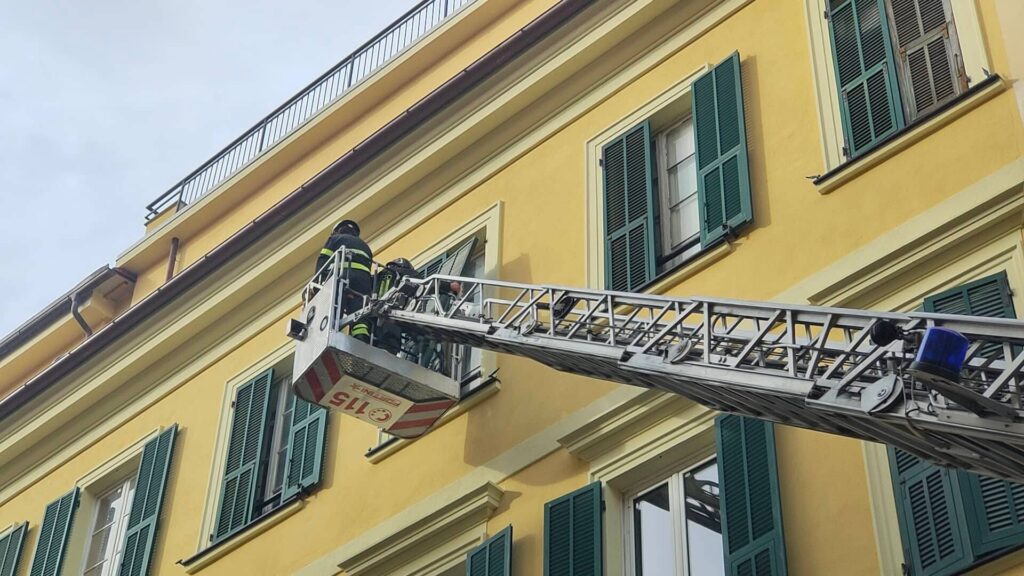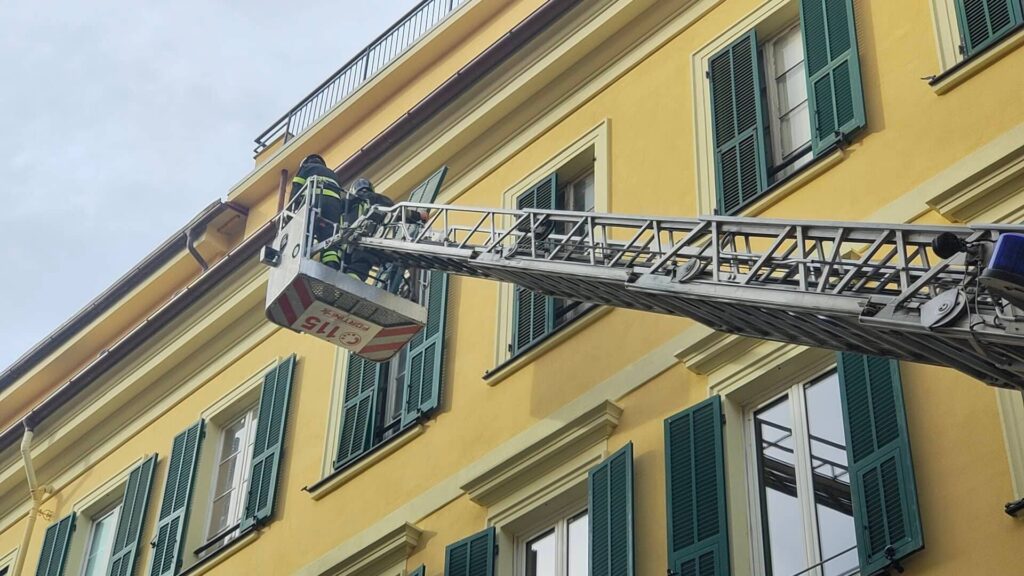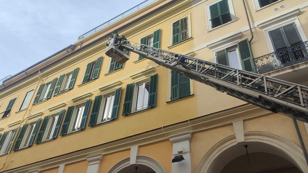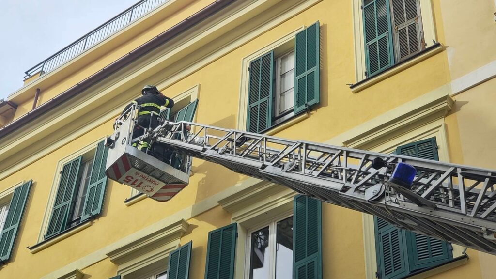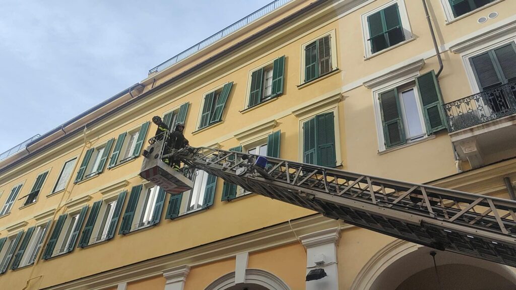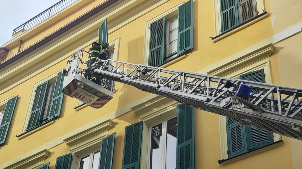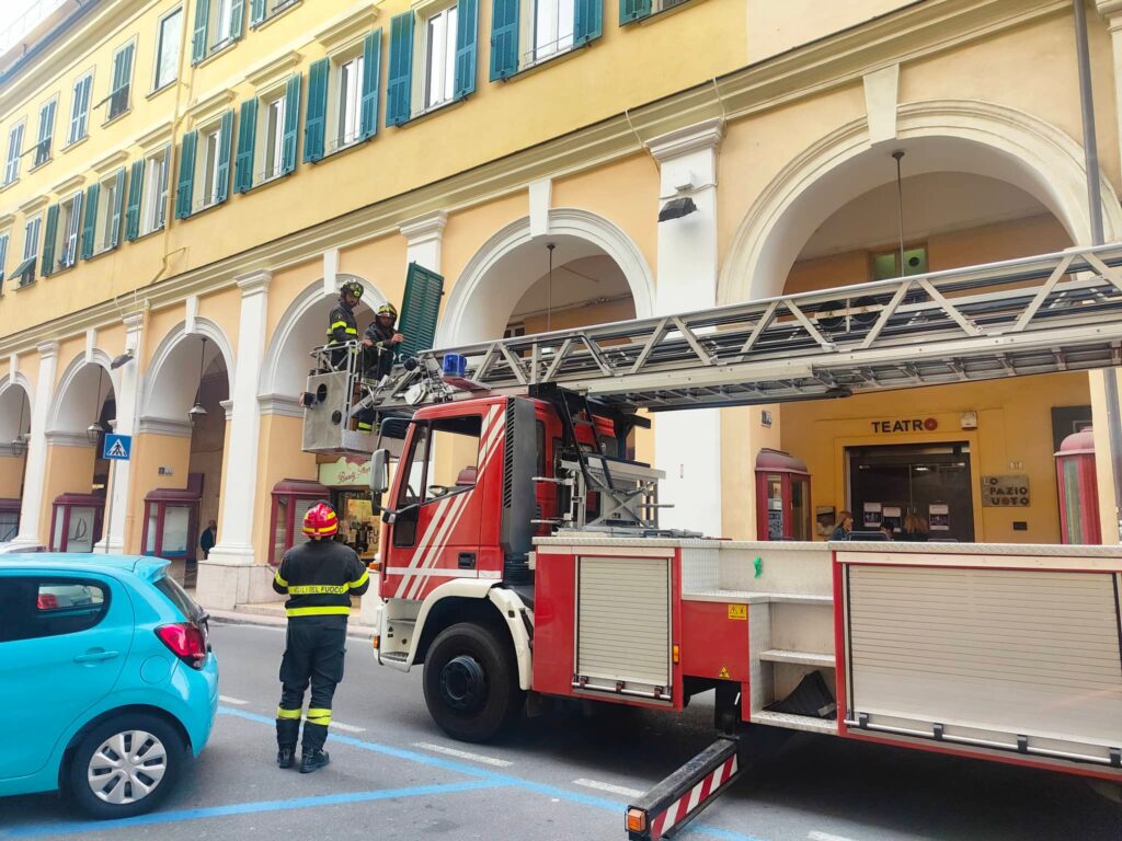 Intervento dei Vigili del Fuoco, questo pomeriggio, in via Bonfante, a Imperia, per una persiana pericolante all’ultimo piano di un palazzo.