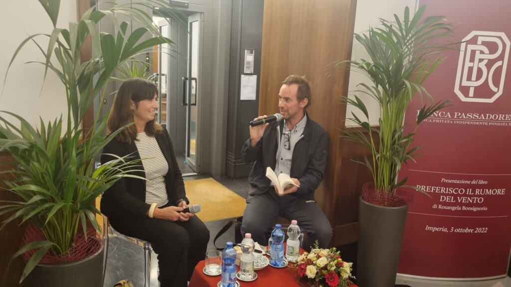 “Da anni intervisto gli scrittori e non avrei mai pensato di pubblicare un mio libro, ma questa storia ha bussato alla mia porta con una certa insistenza e alla fine ho ceduto“. Lo racconta a ImperiaPost Rosangela Bonsignorio, direttrice insieme a Danco Singer del rinomato Festival della Comunicazione di Camogli, ieri ospite presso la sede di Imperia della Banca Passadore per la presentazione del suo libro d’esordio “Preferisco il rumore del vento” (Il Canneto Editore).