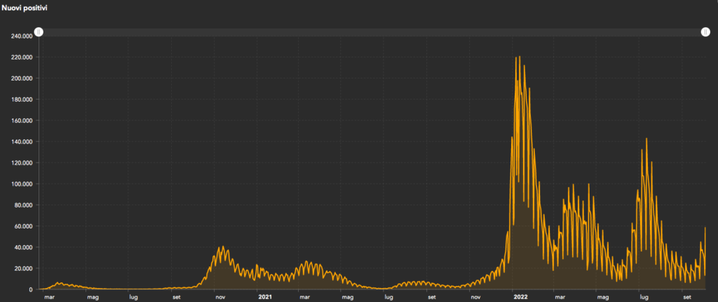 Sono 58.885 i nuovi casi di Coronavirus registrati su tutto il territorio nazionale, nell’arco delle ultime 24 ore (ieri erano 13.316).