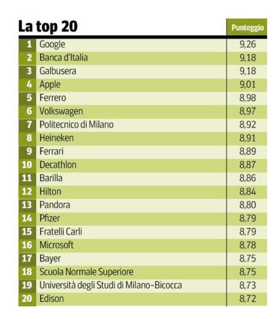 La Carli in mezzo a colossi come Google, Banca d’Italia e Galbusera