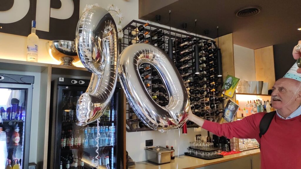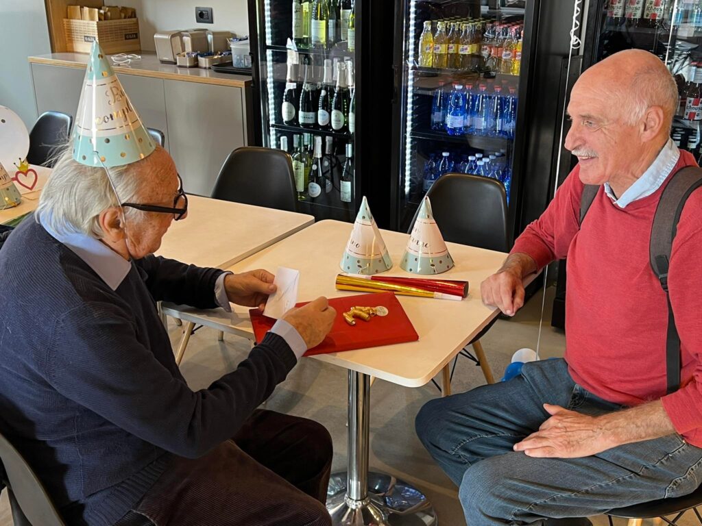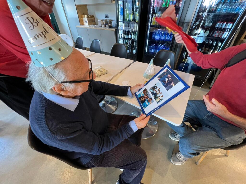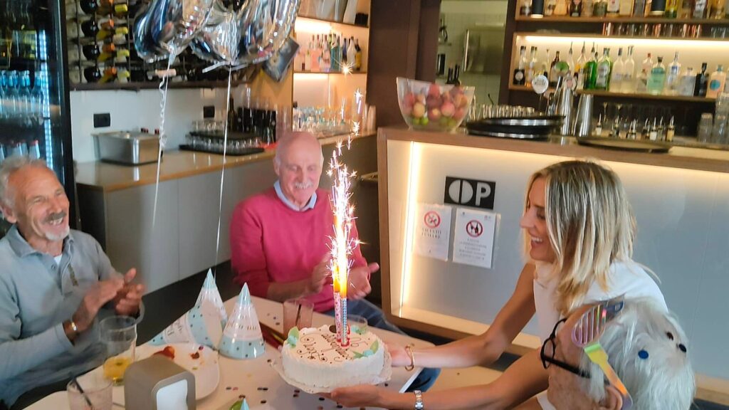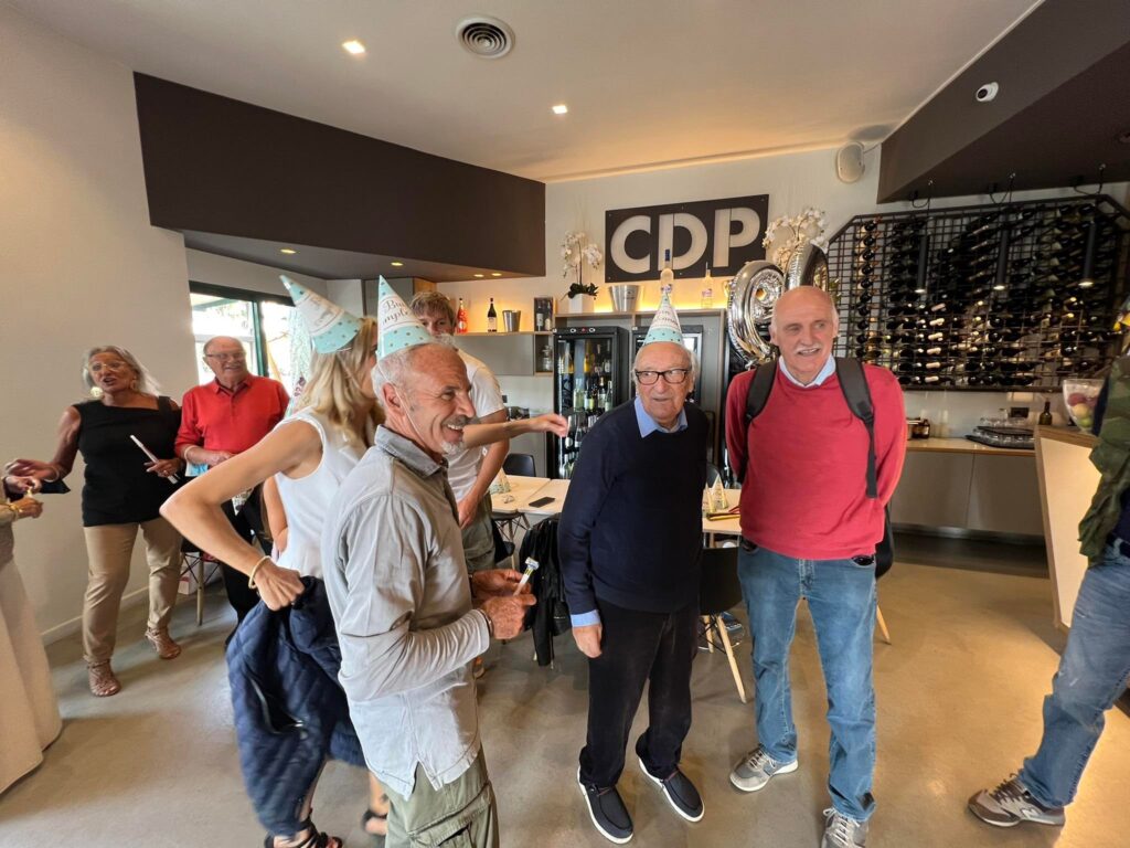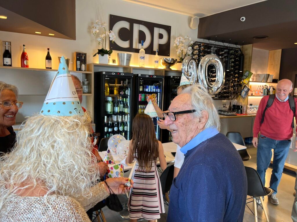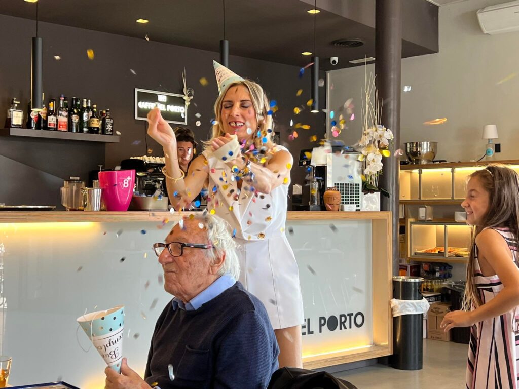 La festa si è svolta stamane al Caffè del Porto dove ad aspettare Enzo c’erano la moglie, la figlia con il marito e la nipotina di Enzo, oltre a tanti amici.