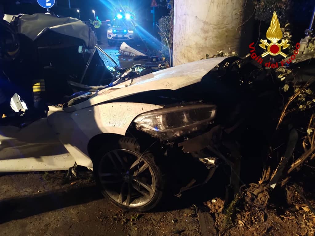 Secondo quanto ricostruito, uno dei due ragazzi avrebbe perso il controllo dell’auto, forse a causa dell’asfalto bagnato, andando a schiantarsi contro il pilone dell’ex ferrovia.