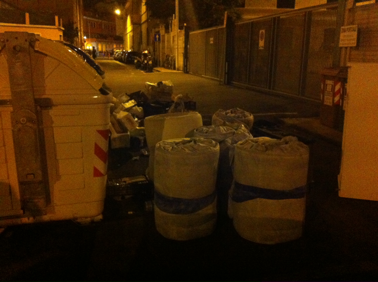 Imperia. “E quindi uscimmo a riveder le stelle“…sui materassi abbandonati accanto ai bidoni della spazzatura nel parcheggio dell’Agnesi.