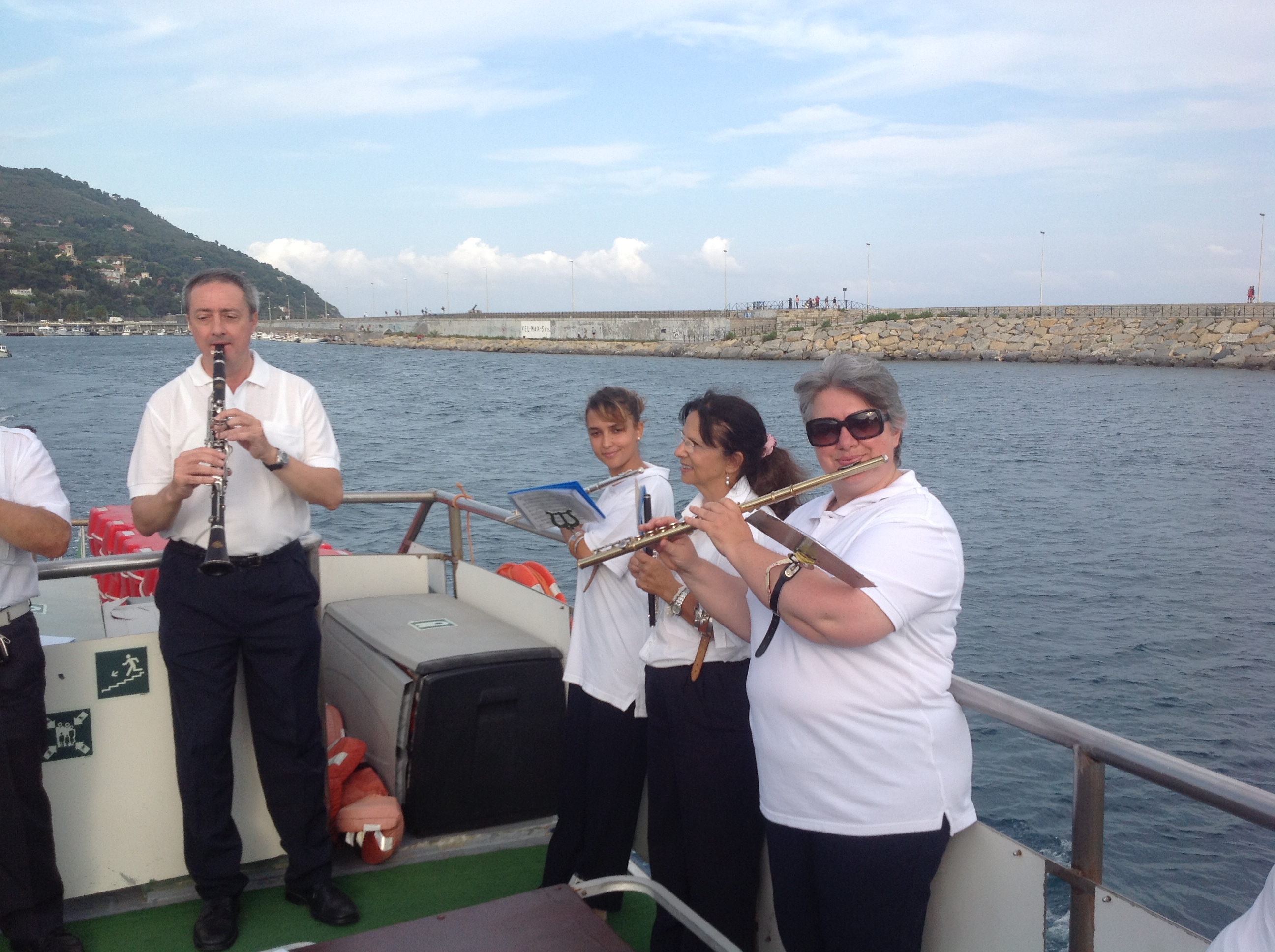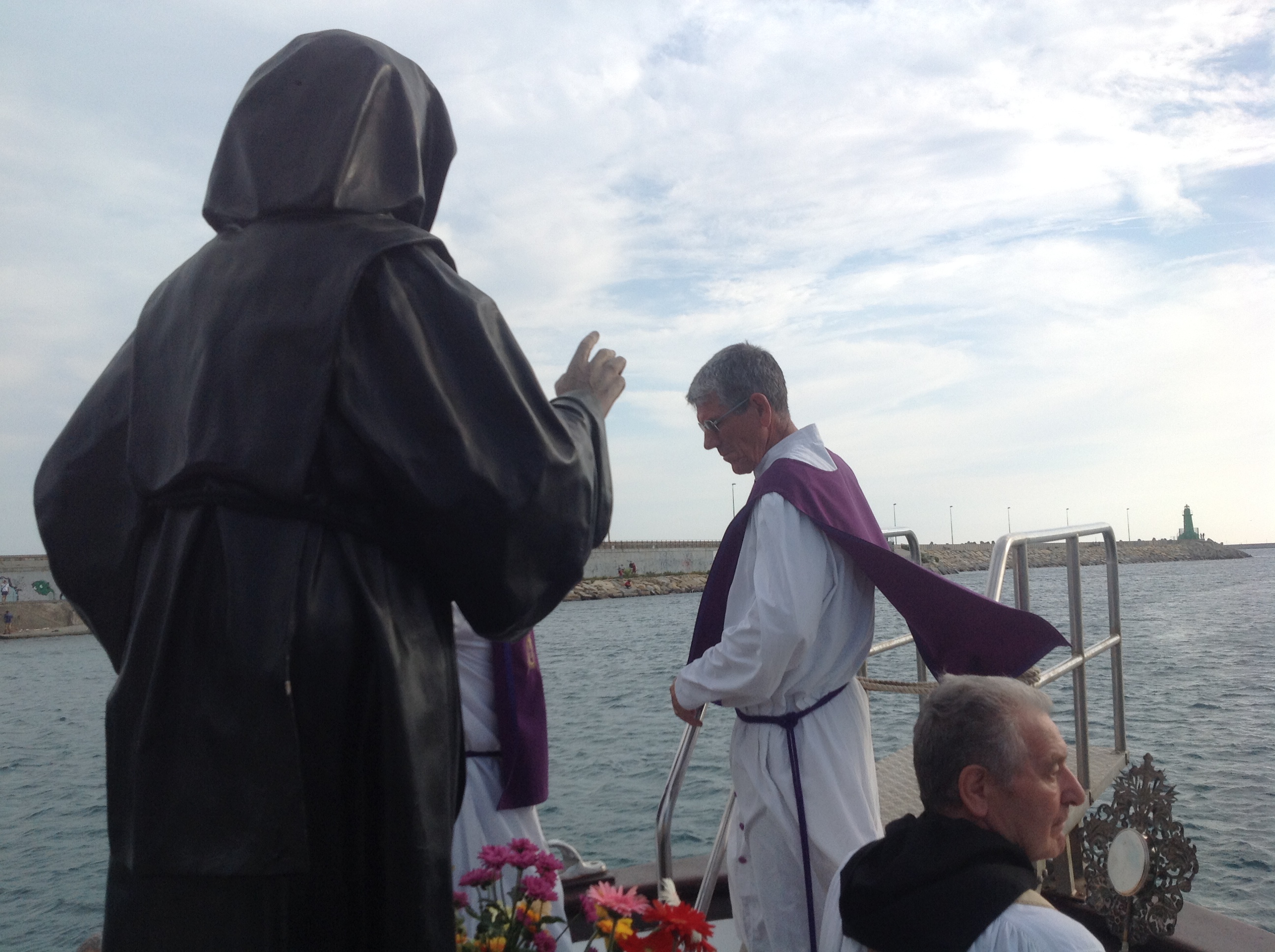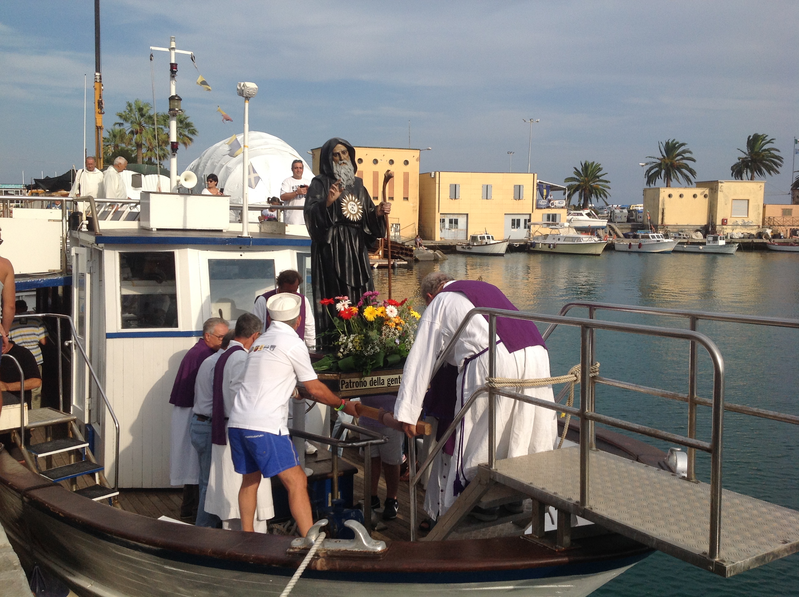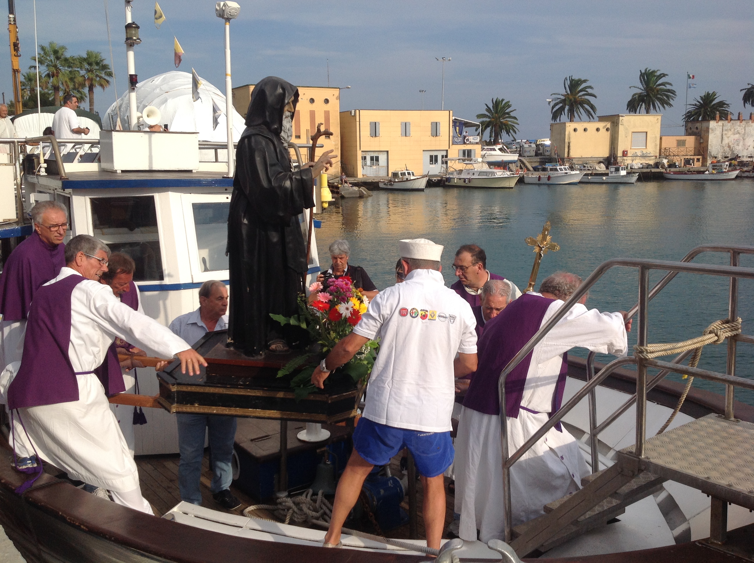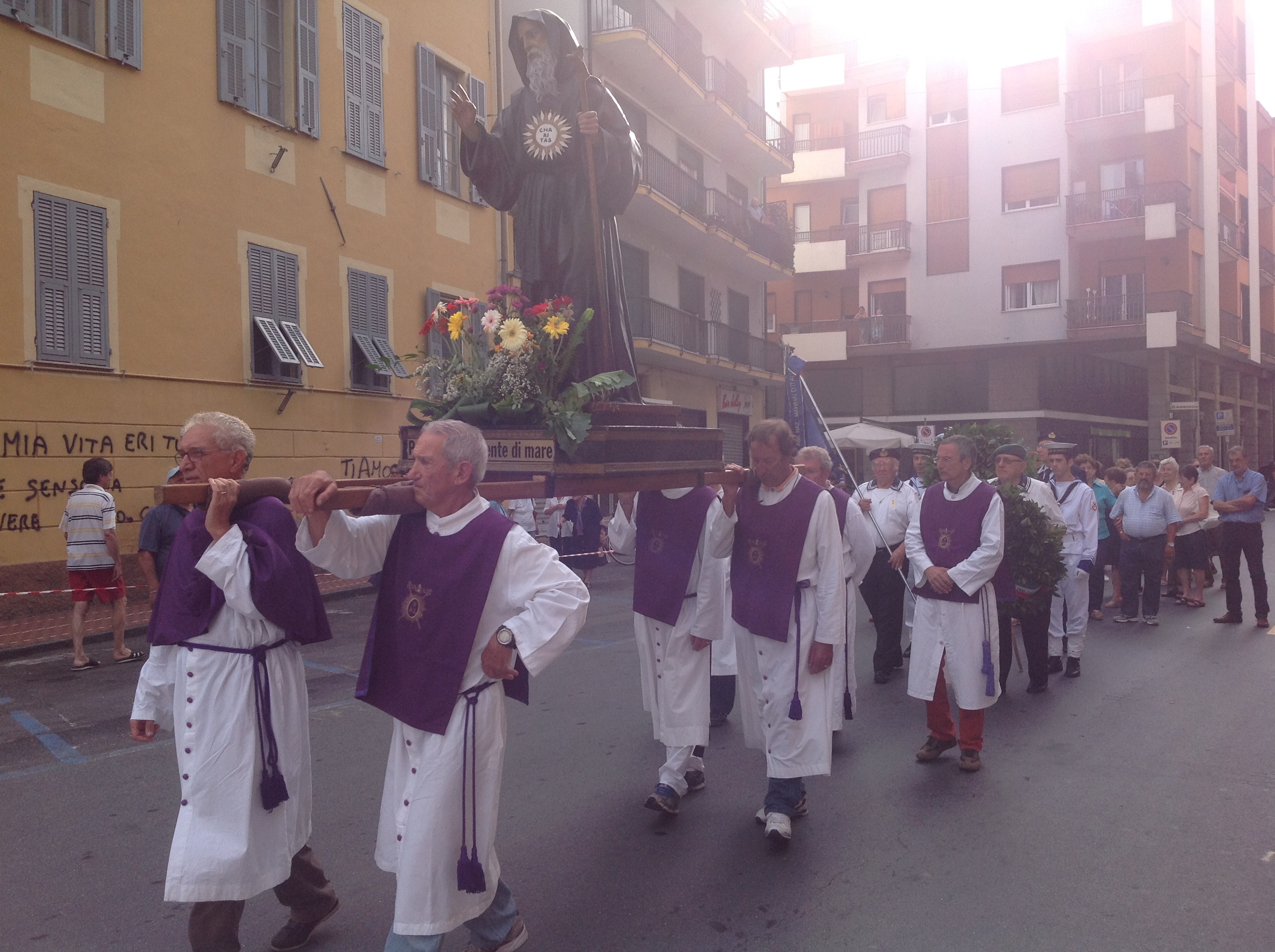 Arrivati su Calata Cuneo la statua in carton gesso del Santo è stata posizionata a bordo della Dea Diana e, subito dopo, la nave è salpata in direzione Borgo Marina. Qui si è fatta la consueta benedizione e, poco più al largo, davanti al Comune di Imperia, è stata lanciata in mare una corona d’alloro benedetta in onore dei caduti in mare. Dopo la benedizione della città la nave con il Santo è rientrata al porto di Oneglia.