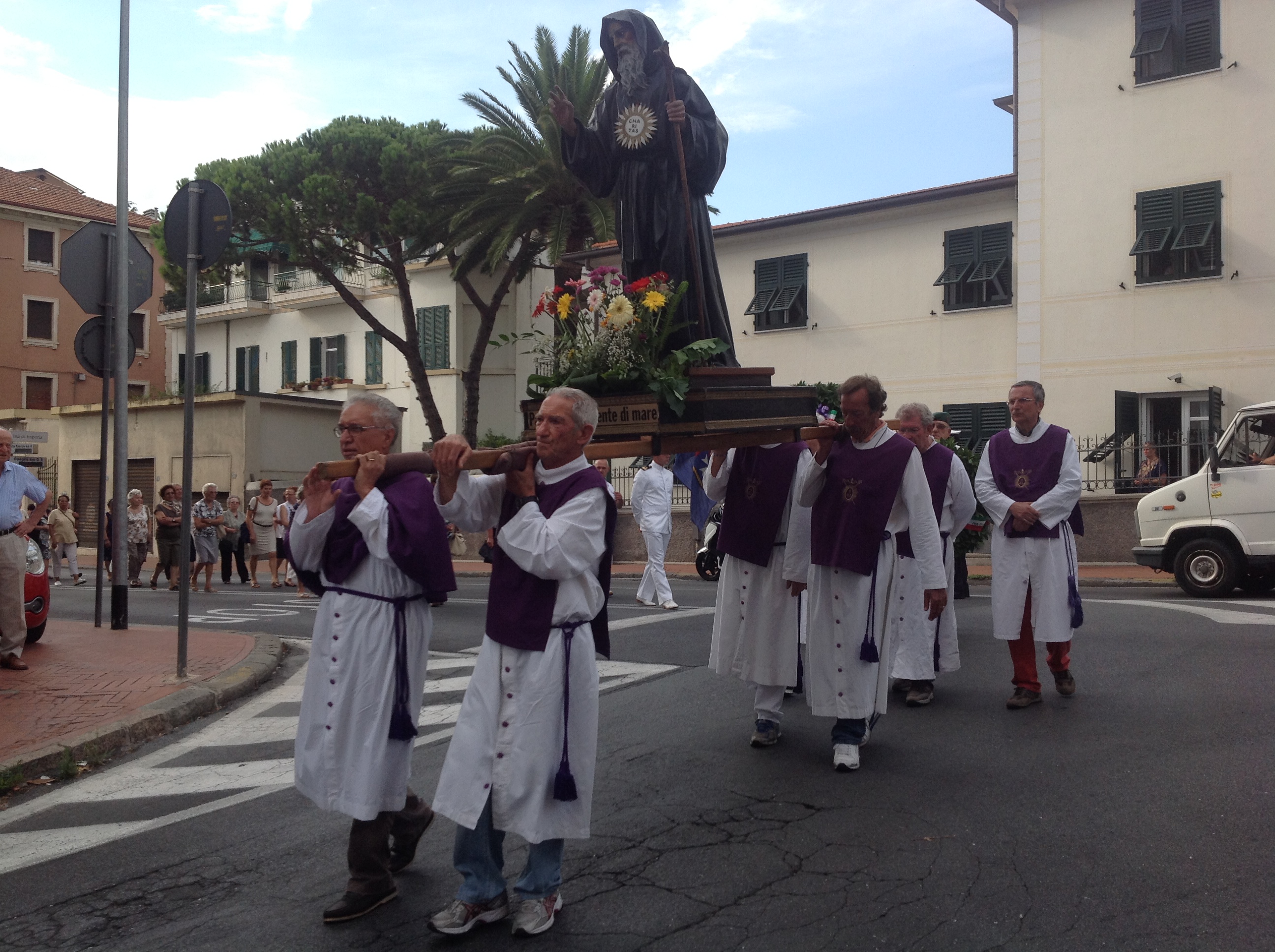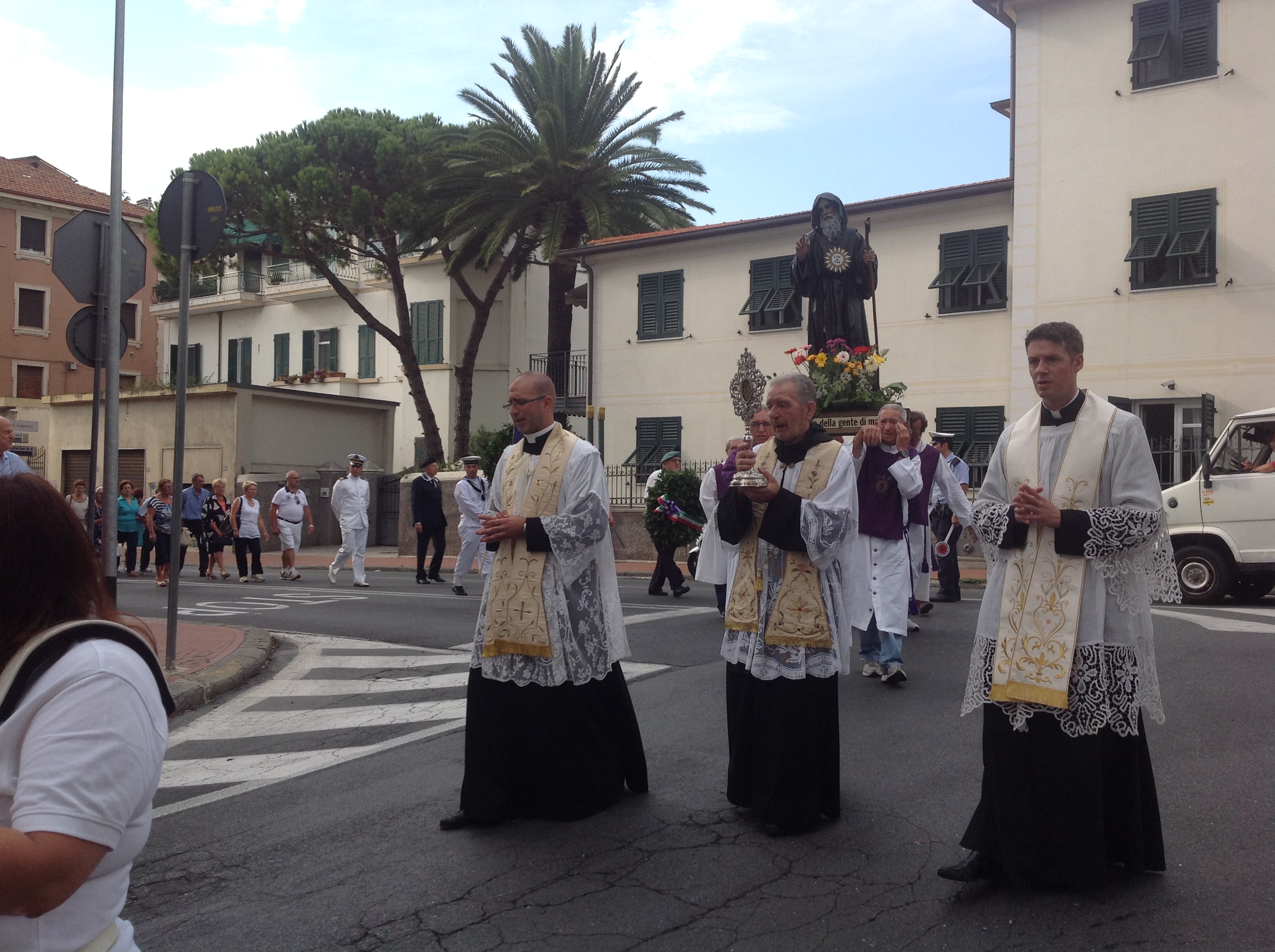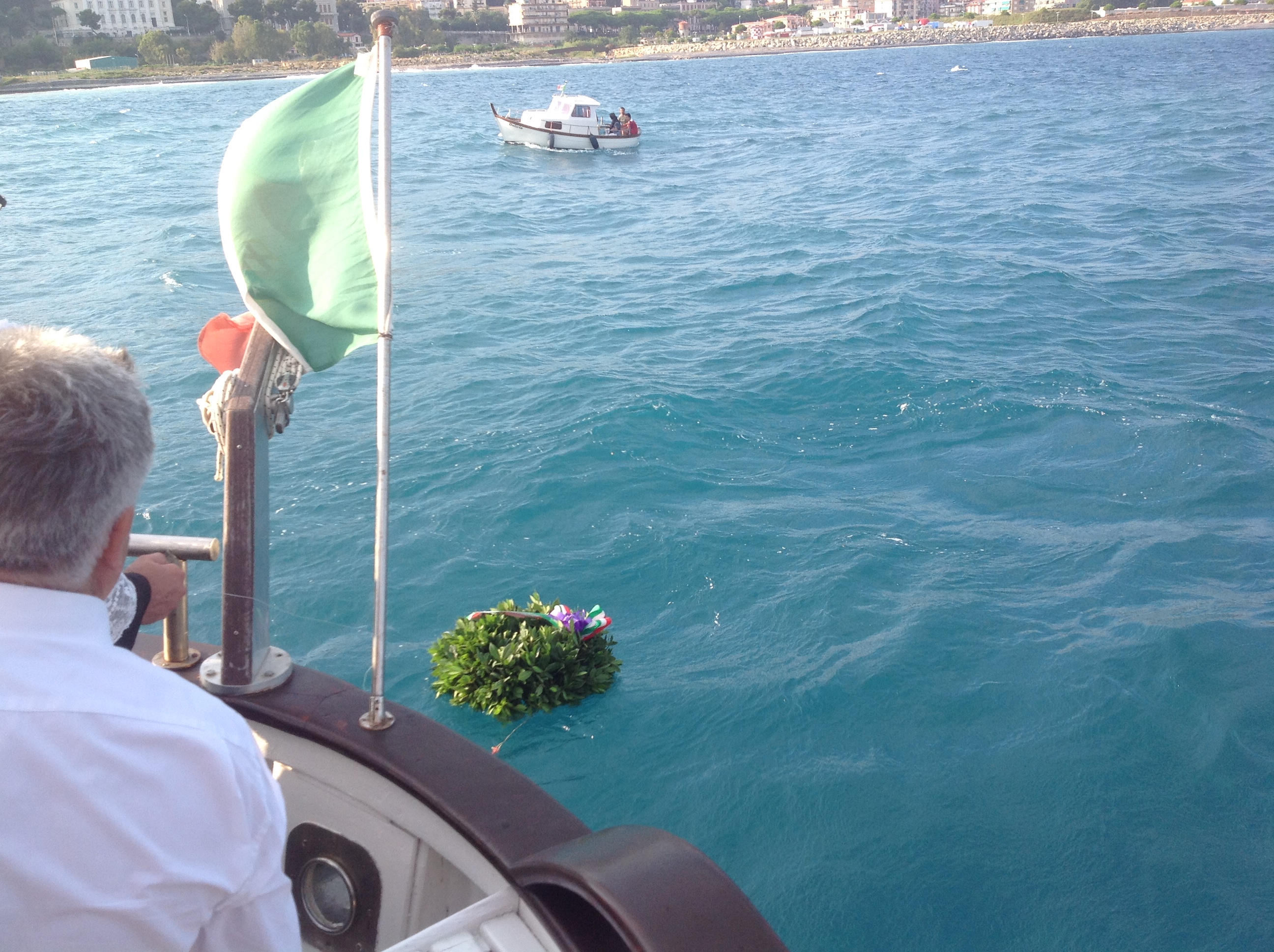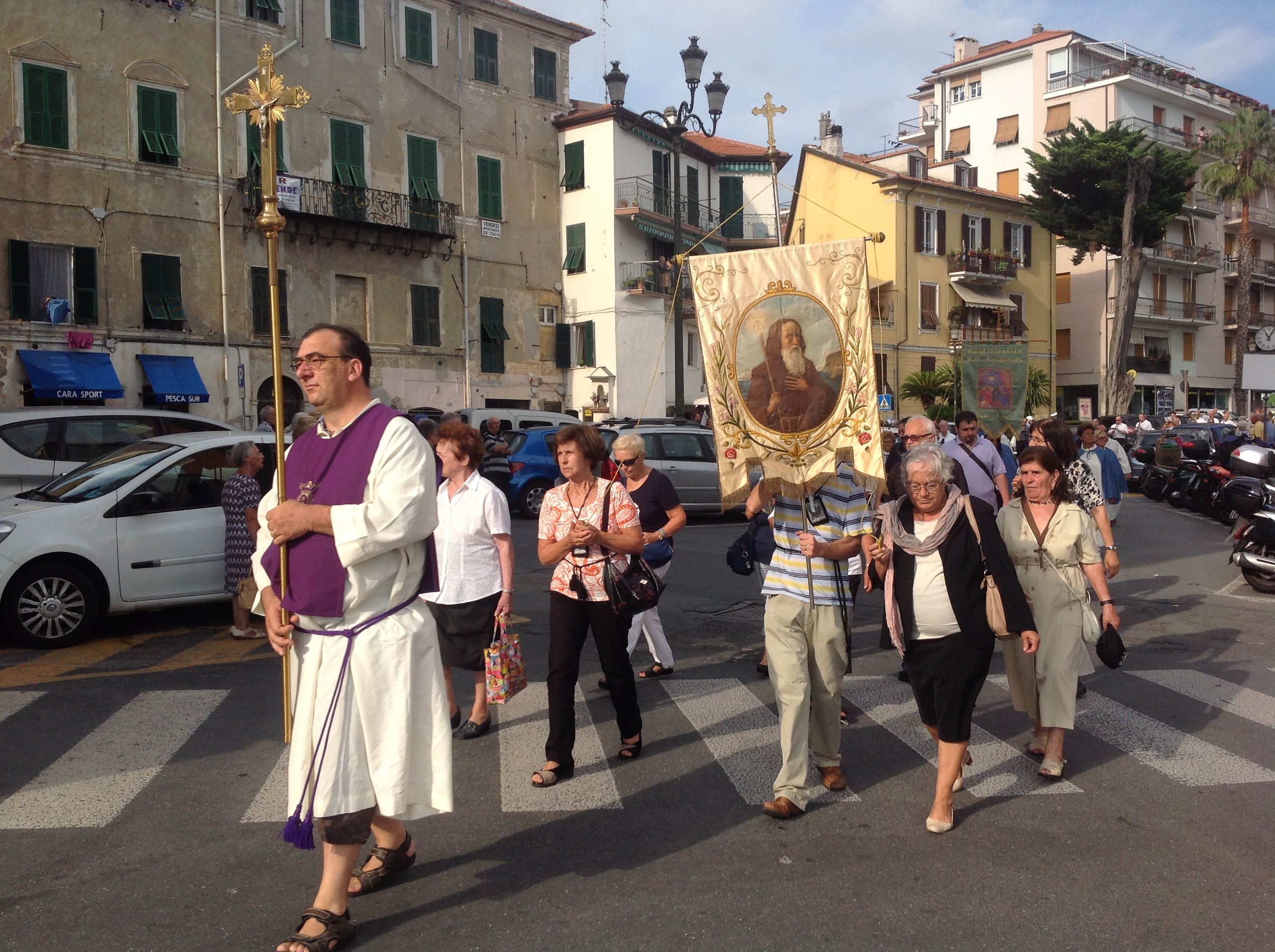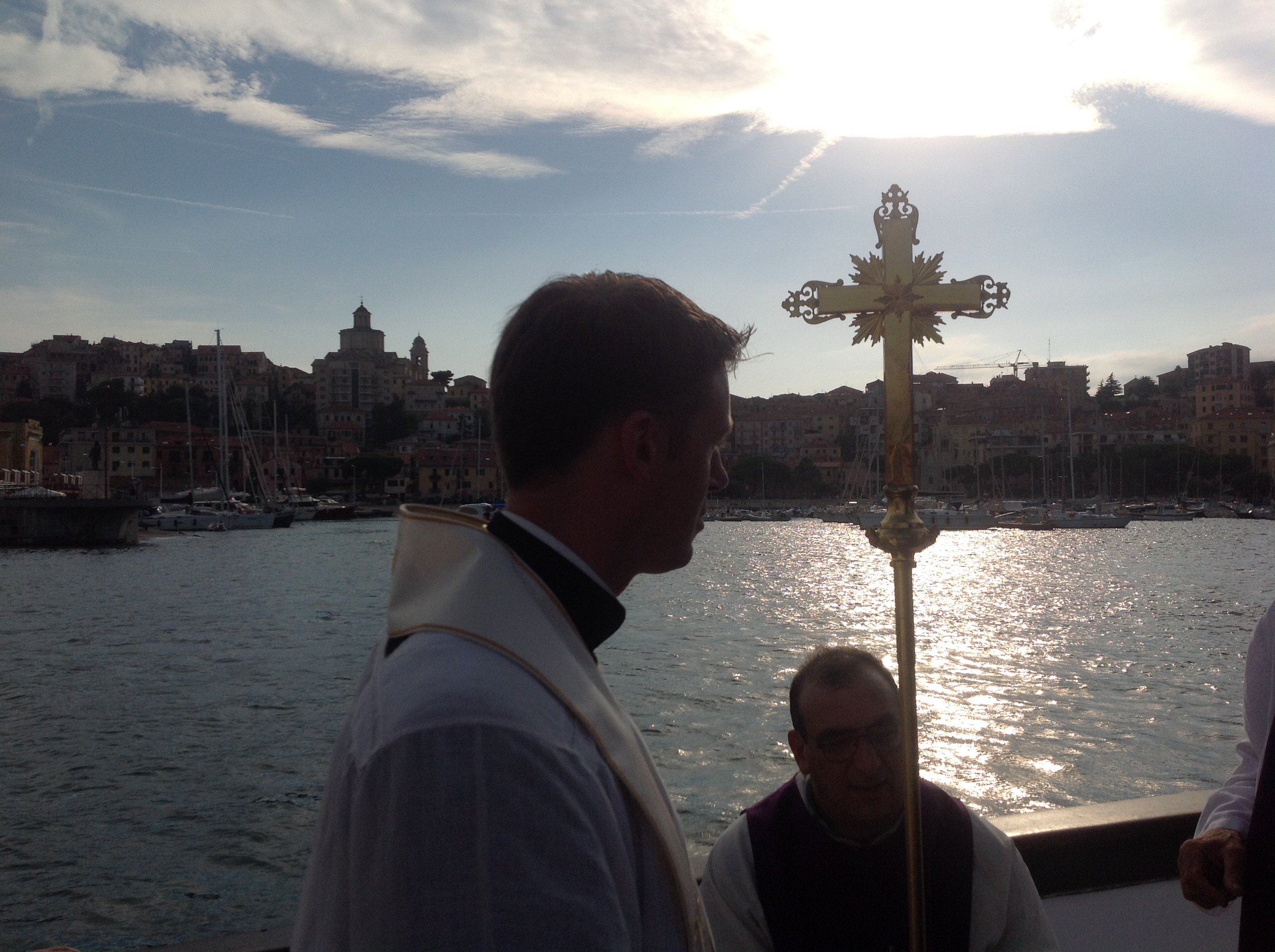 Arrivati su Calata Cuneo la statua in carton gesso del Santo è stata posizionata a bordo della Dea Diana e, subito dopo, la nave è salpata in direzione Borgo Marina. Qui si è fatta la consueta benedizione e, poco più al largo, davanti al Comune di Imperia, è stata lanciata in mare una corona d’alloro benedetta in onore dei caduti in mare. Dopo la benedizione della città la nave con il Santo è rientrata al porto di Oneglia.