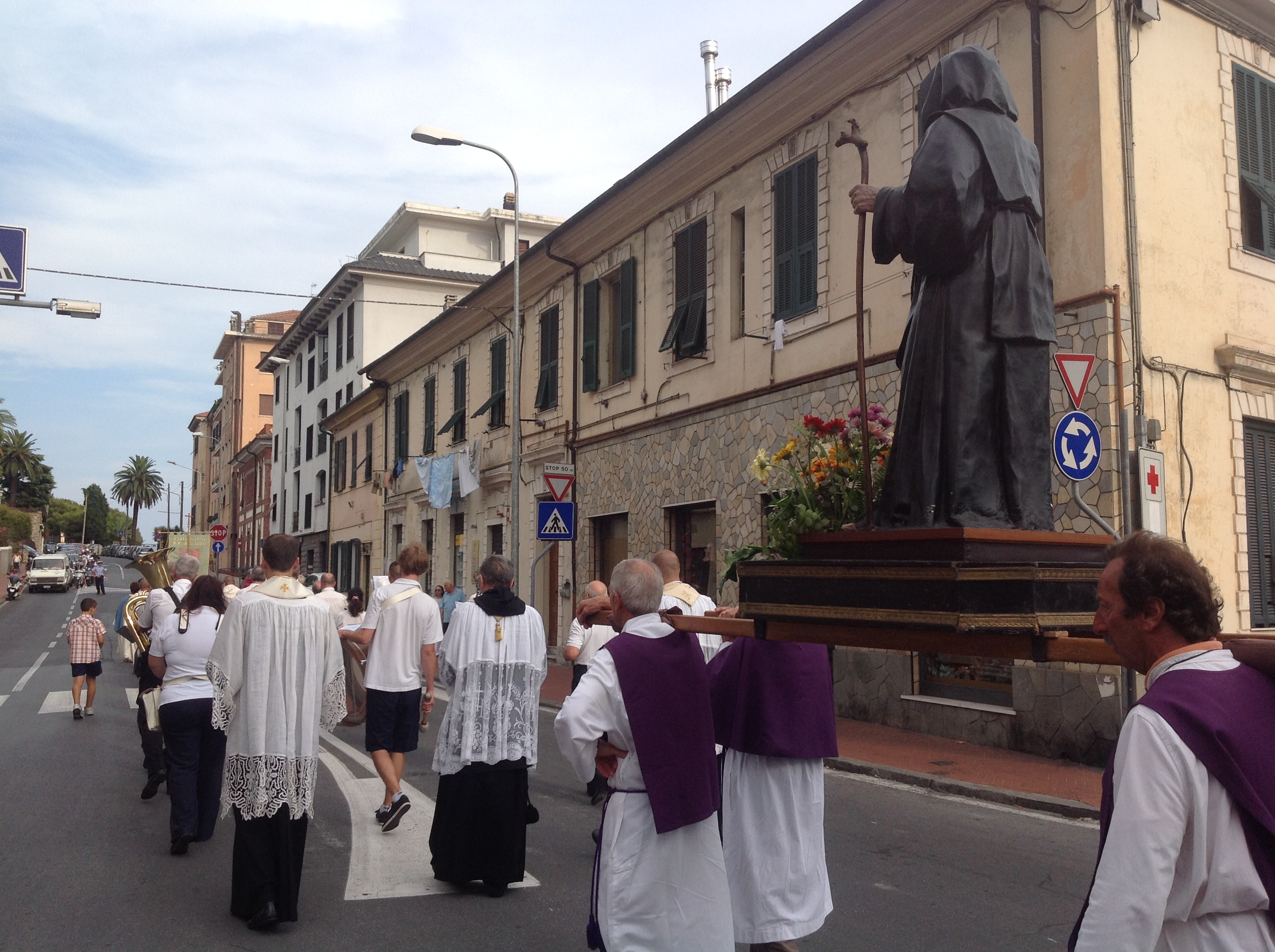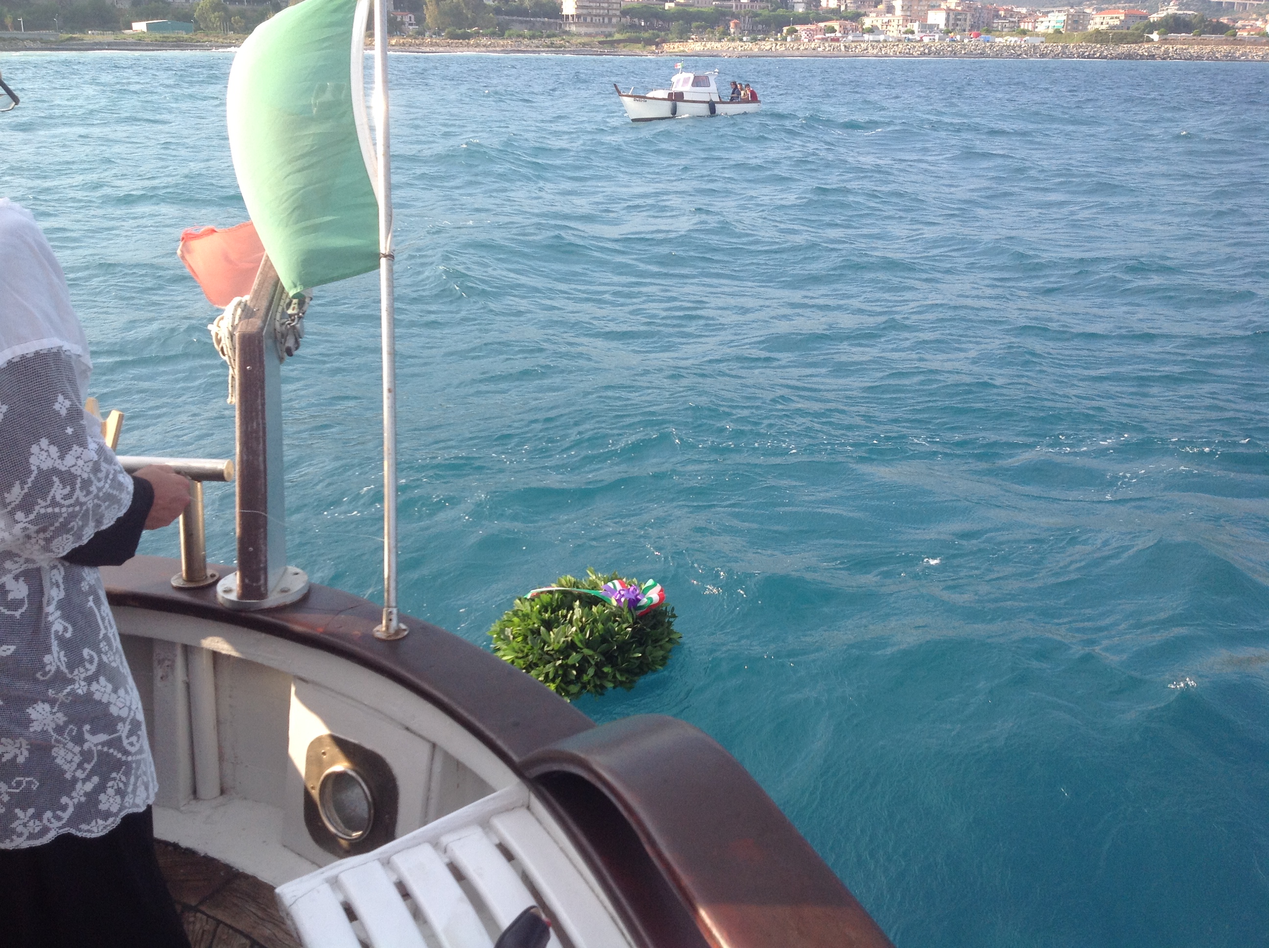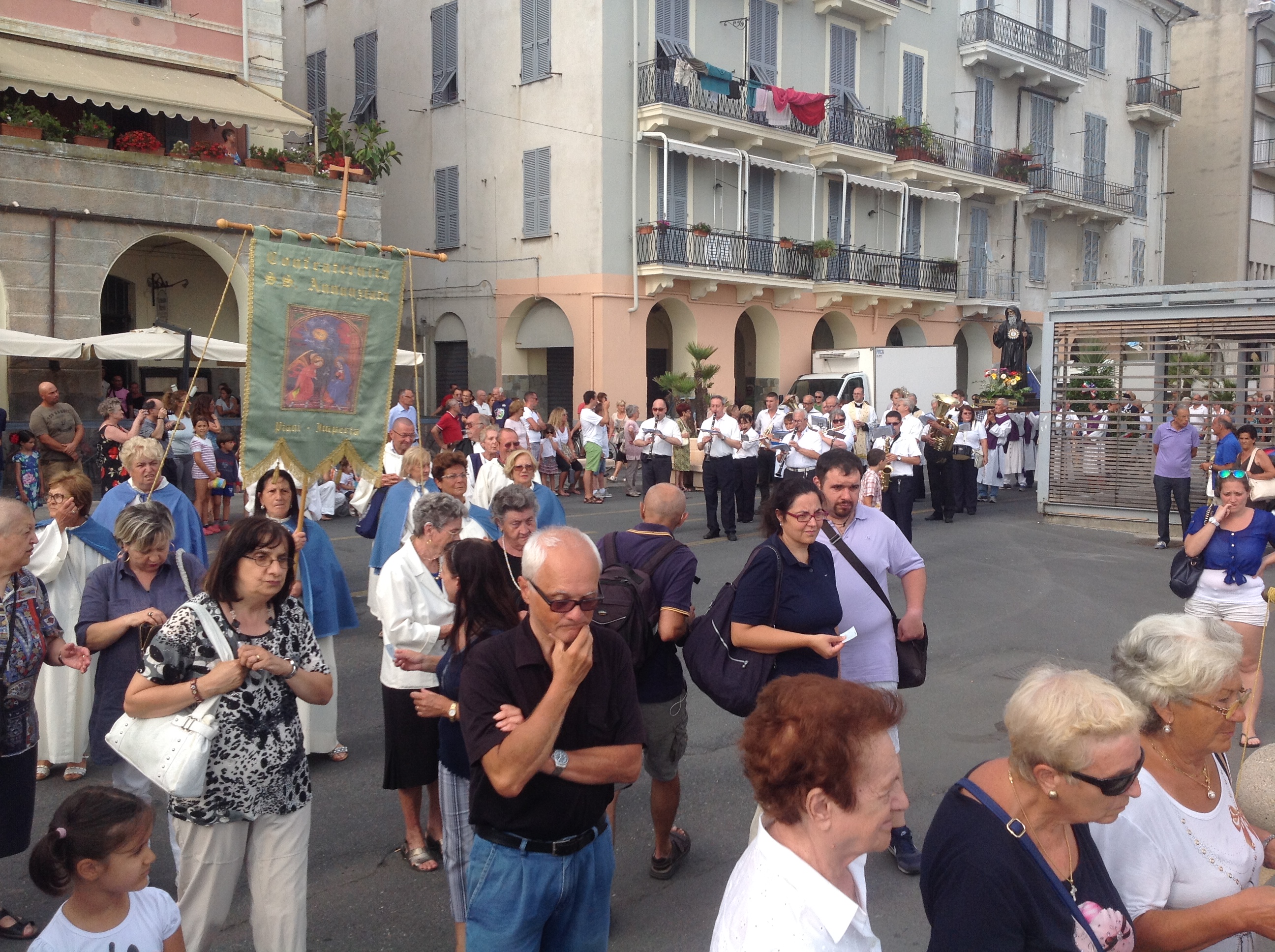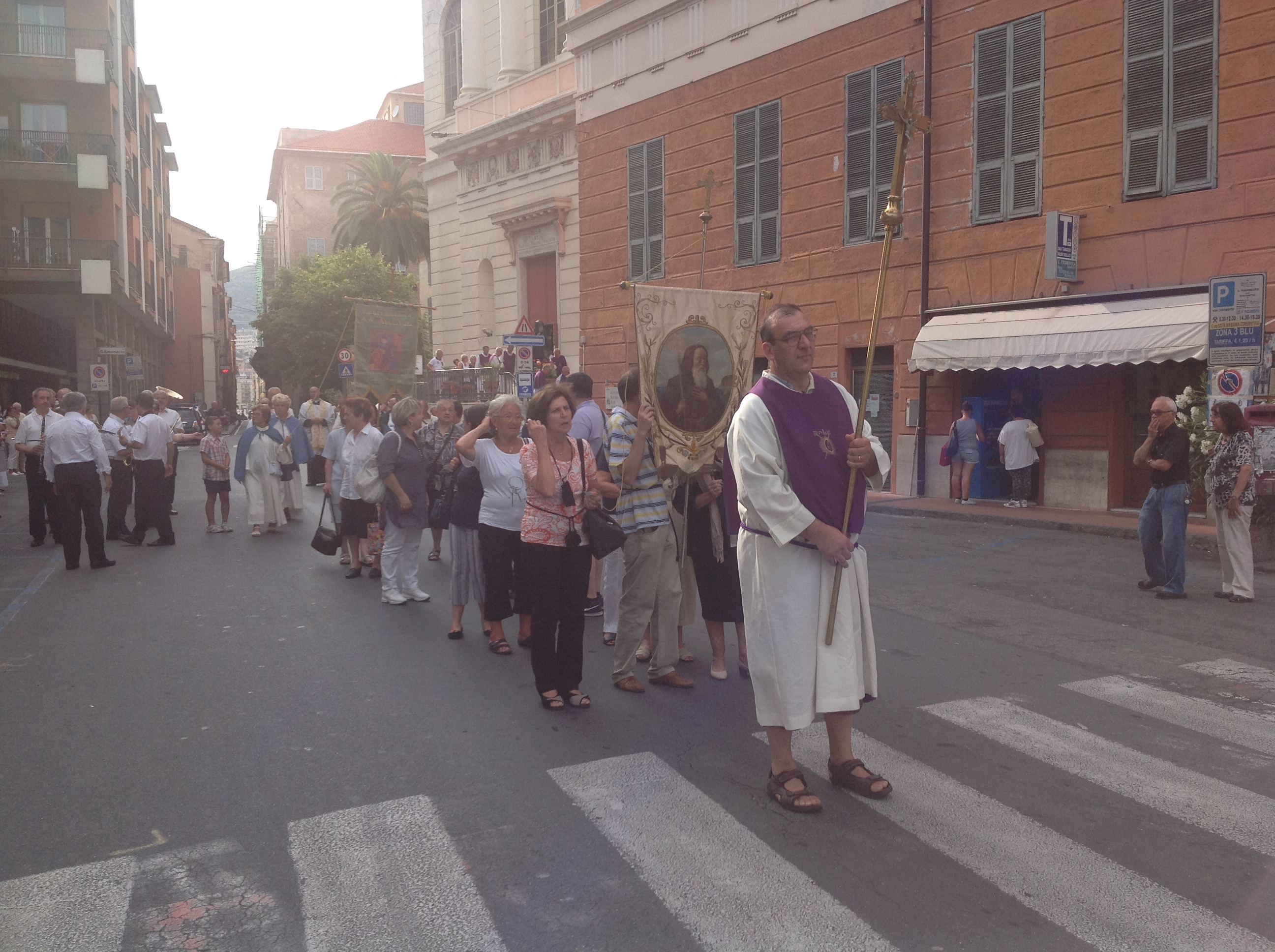 Arrivati su Calata Cuneo la statua in carton gesso del Santo è stata posizionata a bordo della Dea Diana e, subito dopo, la nave è salpata in direzione Borgo Marina. Qui si è fatta la consueta benedizione e, poco più al largo, davanti al Comune di Imperia, è stata lanciata in mare una corona d’alloro benedetta in onore dei caduti in mare. Dopo la benedizione della città la nave con il Santo è rientrata al porto di Oneglia.