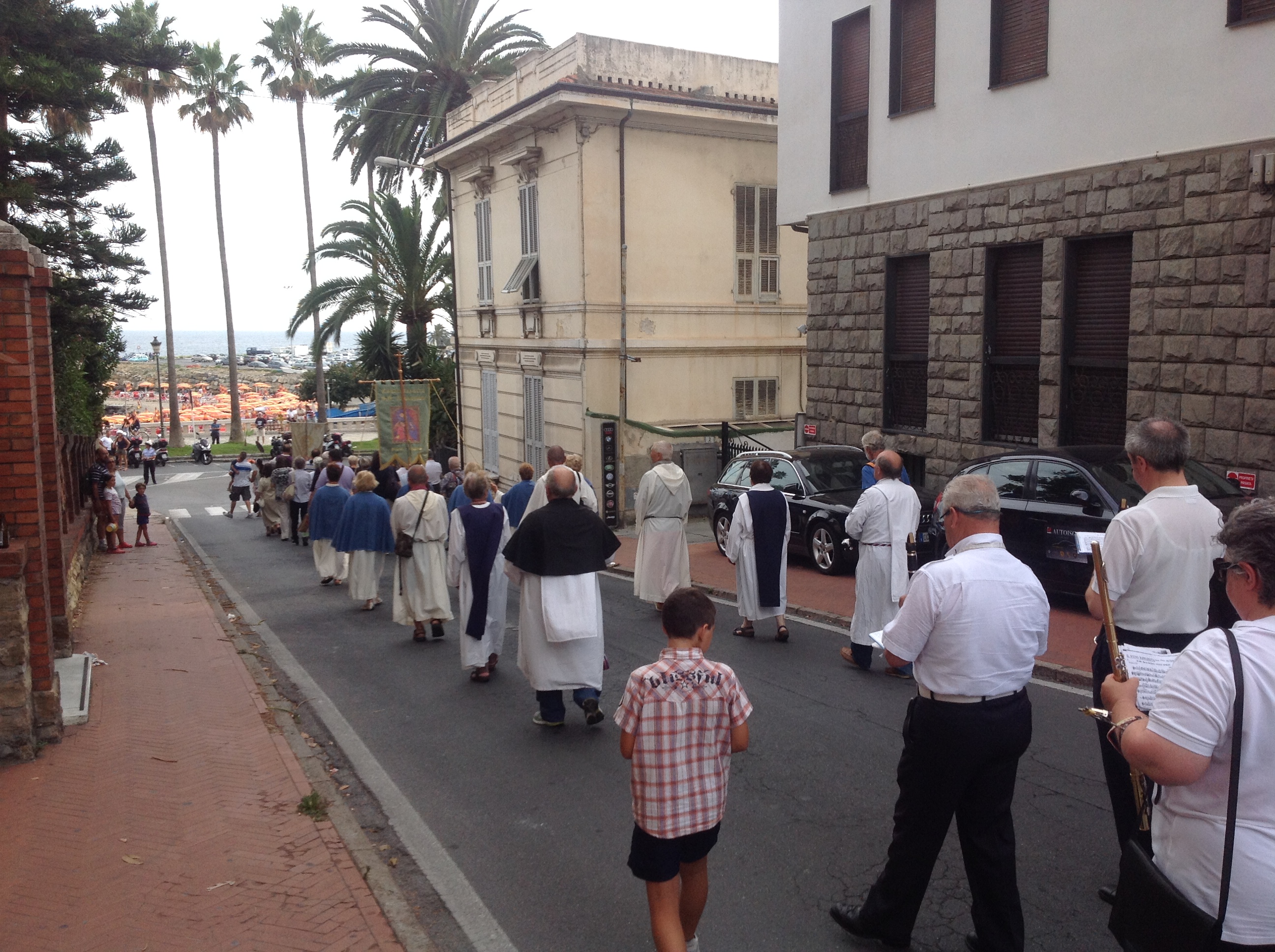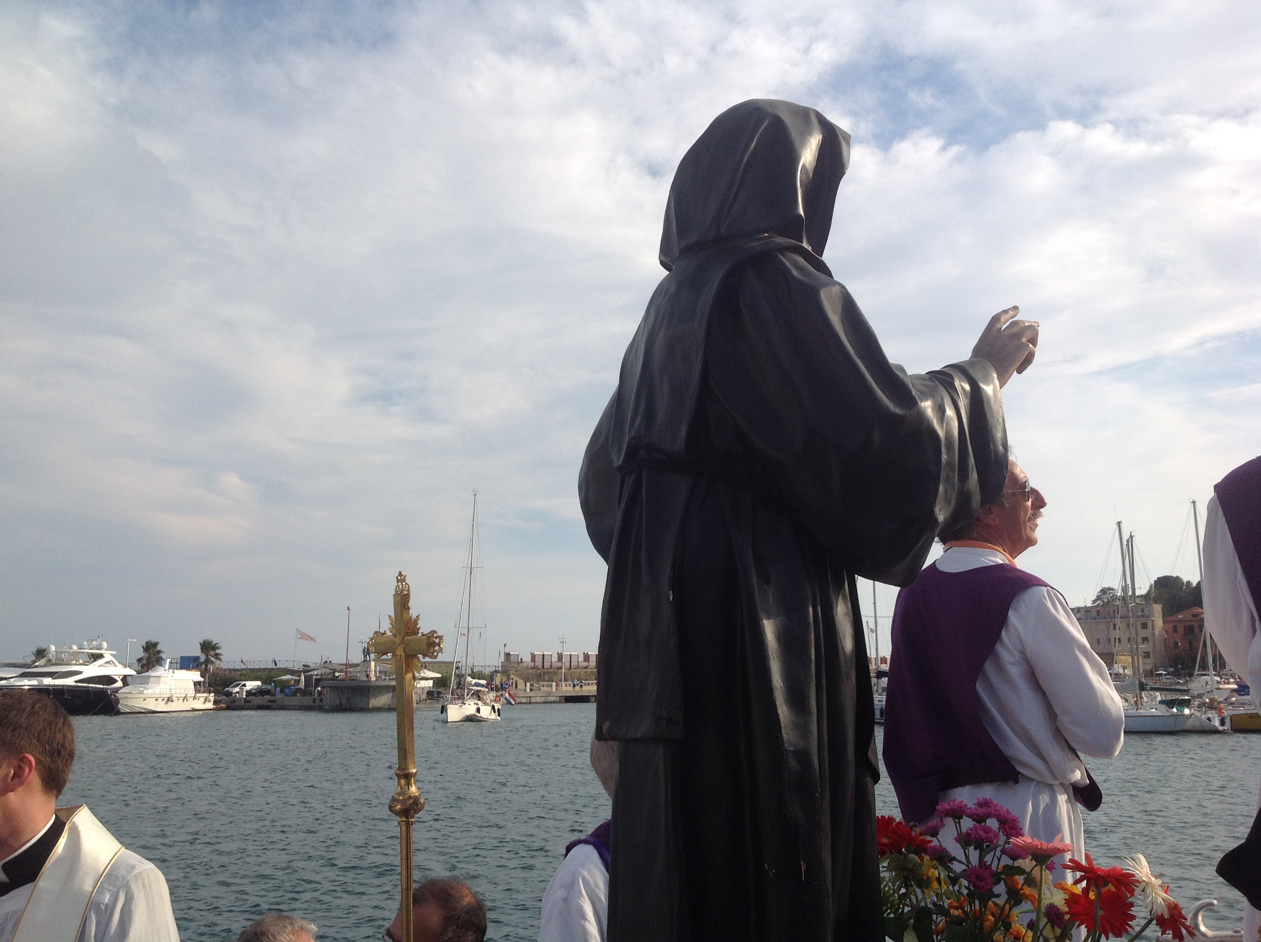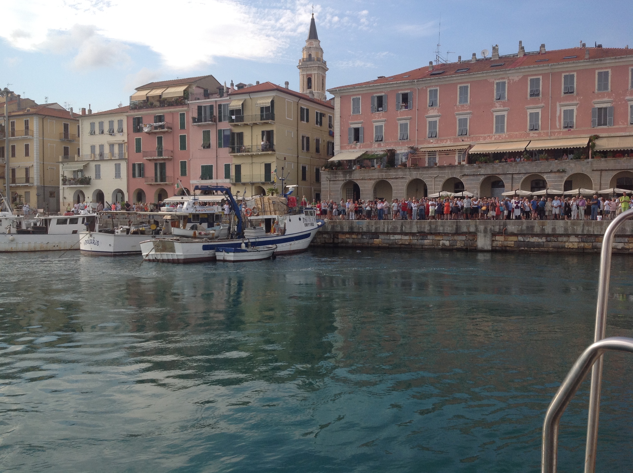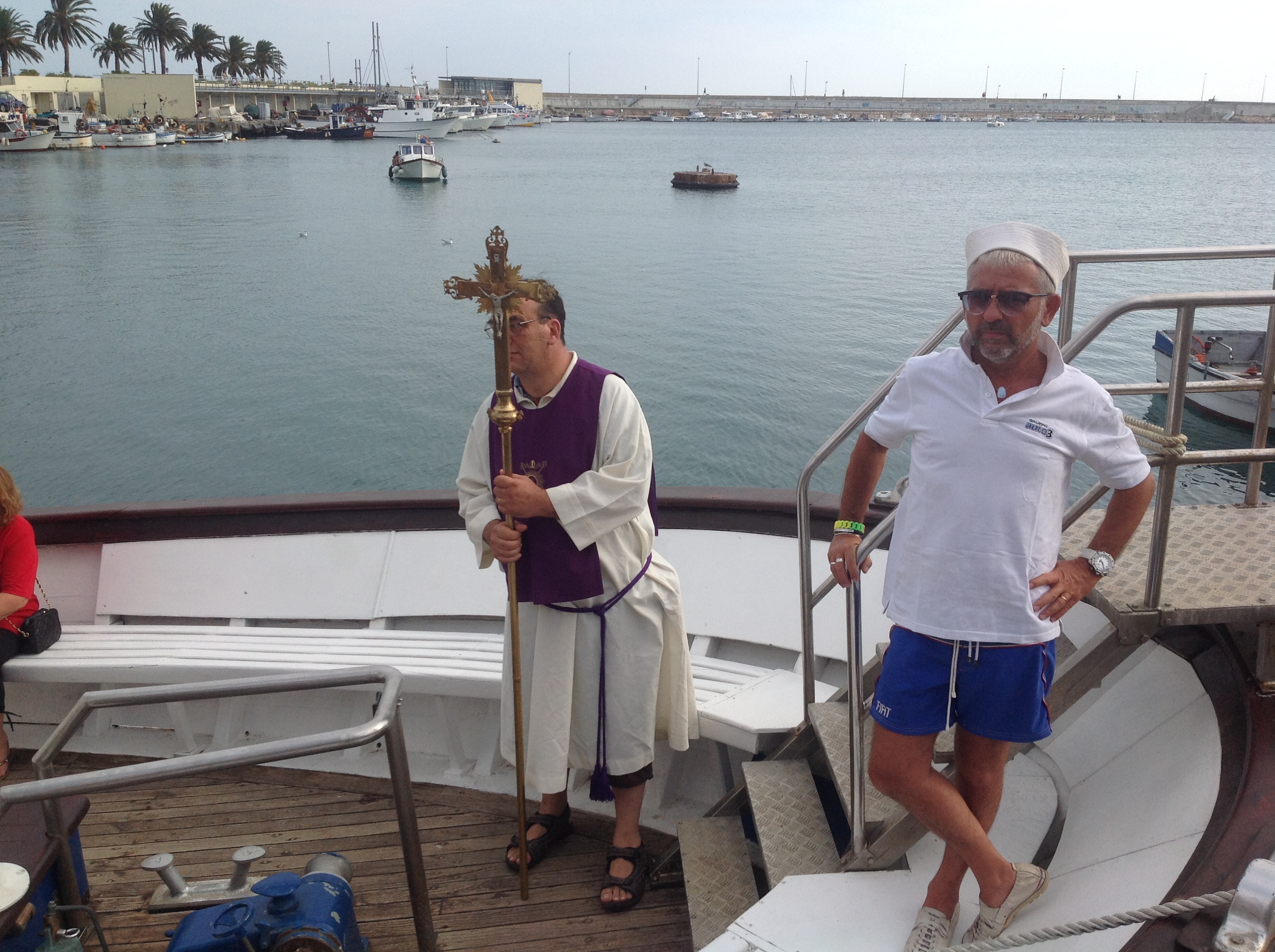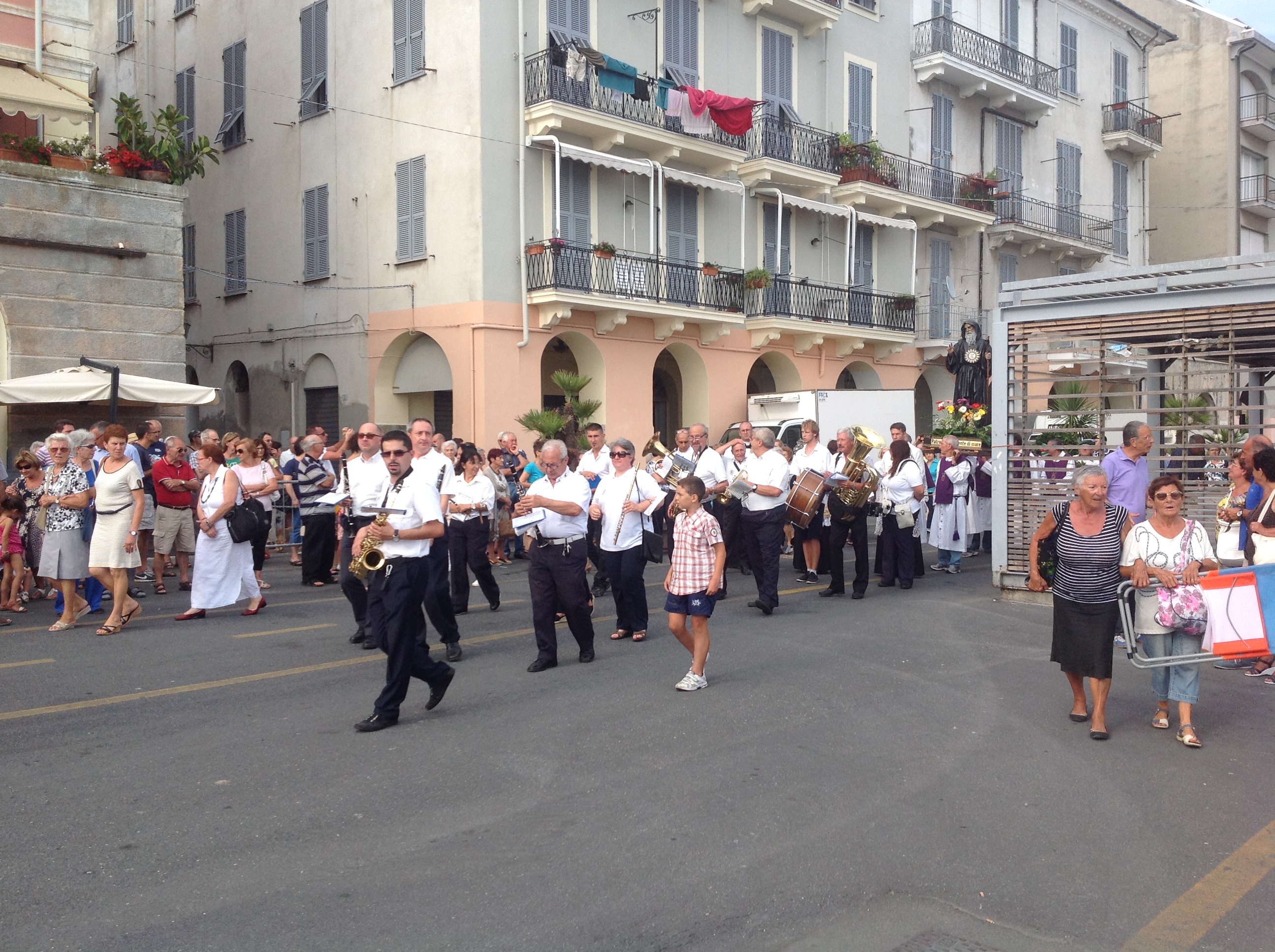 Arrivati su Calata Cuneo la statua in carton gesso del Santo è stata posizionata a bordo della Dea Diana e, subito dopo, la nave è salpata in direzione Borgo Marina. Qui si è fatta la consueta benedizione e, poco più al largo, davanti al Comune di Imperia, è stata lanciata in mare una corona d’alloro benedetta in onore dei caduti in mare. Dopo la benedizione della città la nave con il Santo è rientrata al porto di Oneglia.