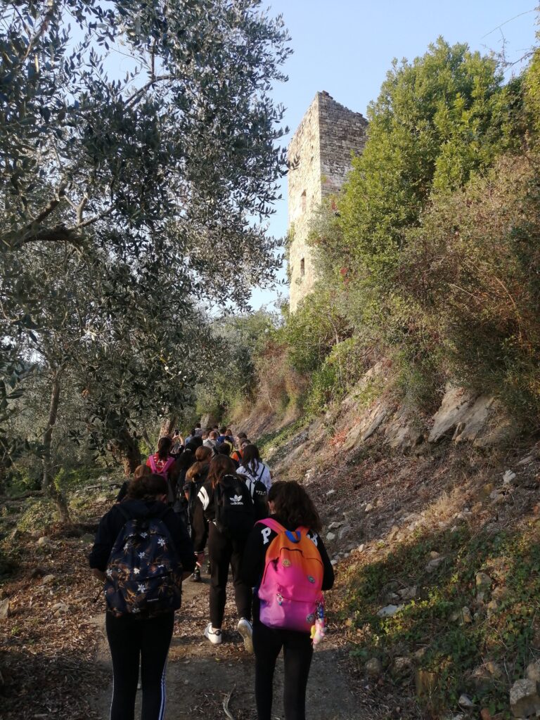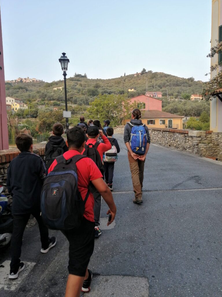 Gli allievi sono stati guidati da Pontedassio a Bestagno attraverso i sentieri e mulattiere tracciati dai nostri avi e riscoperti grazie alla tenace dei volontari di Associazioni e Proloco di Villa Viani, Villa Guardia, Bestagno frazioni di Pontedassio e volontari dell’Associazione Gli Amici del Santuario di Montegrazie Imperia.