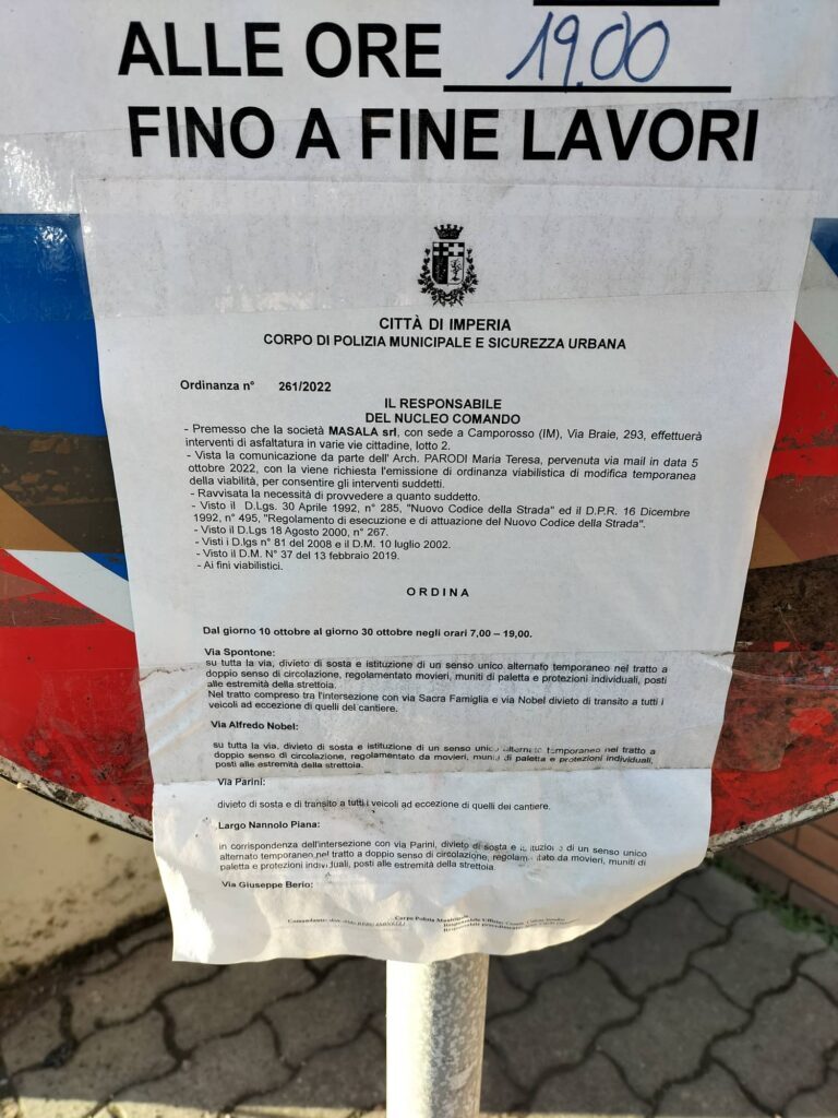 Proseguono i lavori di asfaltatura lungo le principali vie cittadine. Il Circolo Castelvecchio di Imperia, tramite una nota stampa, ha deciso di ringraziare pubblicamente l’amministrazione Comunale per l’intervento in corso in via Spontone.