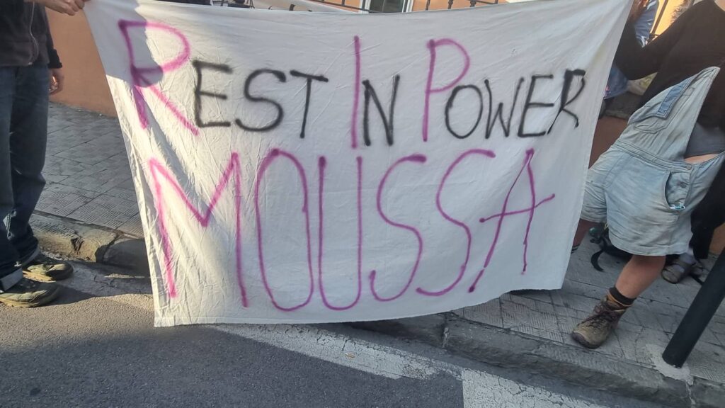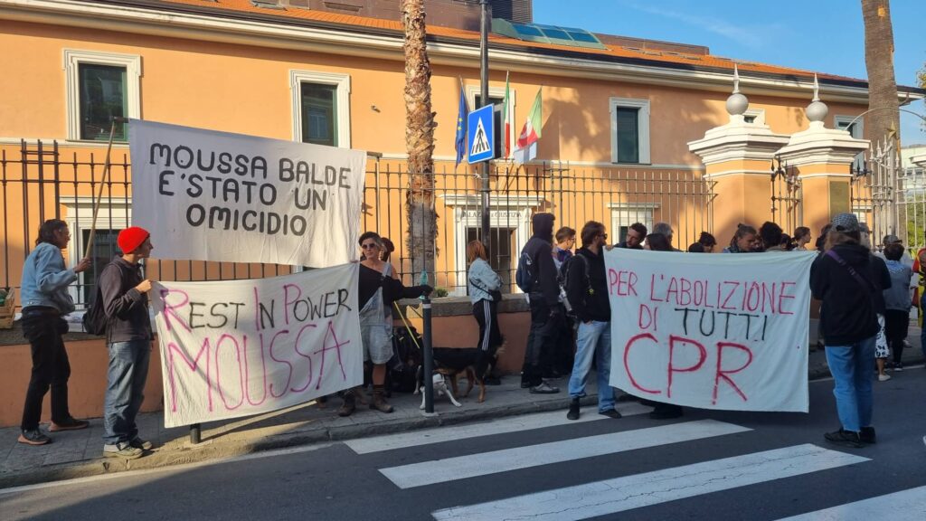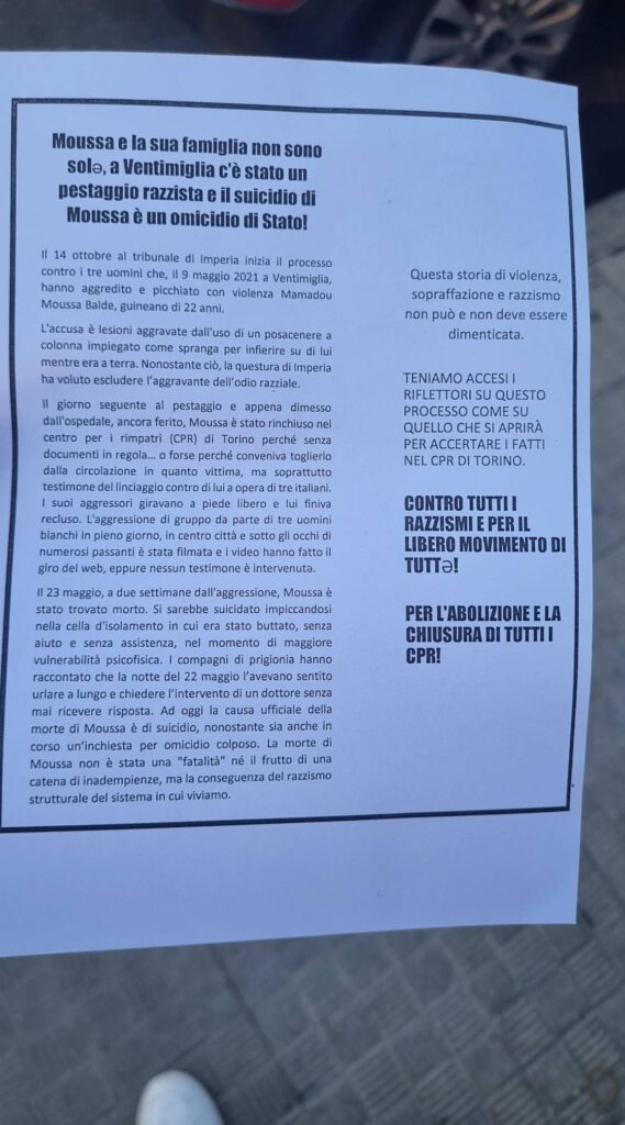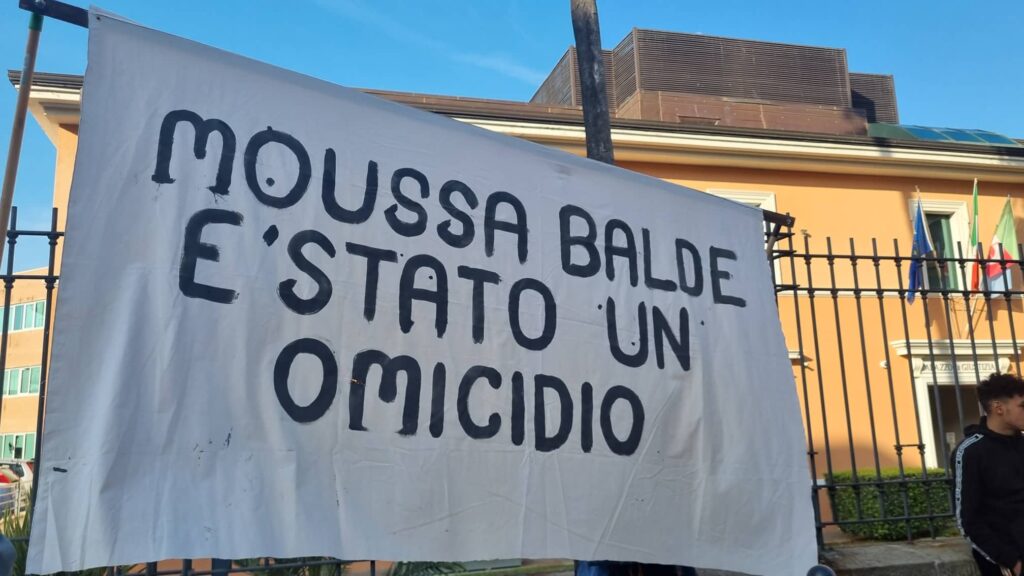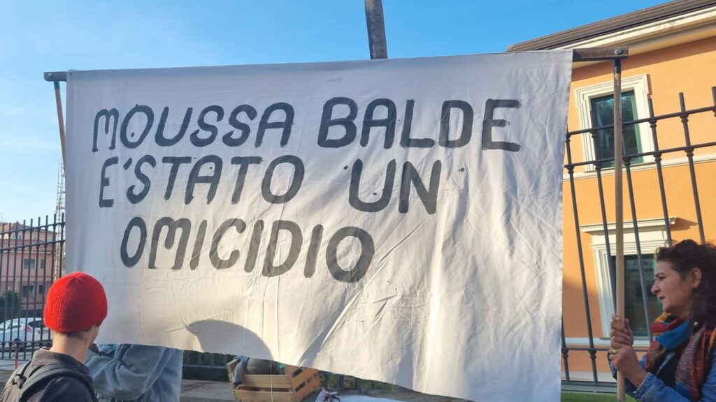Fuori dal Tribunale una trentina di attivisti ha inscenato un sit di solidarietà e protesta, intonando slogan quali “Moussa lotta insieme a noi” e “Fuoco ci Cpr” e esibendo gli striscioni “Per l’abolizione di tutti i Cpr“, “Moussa Balde è stato un omicidio” e “Rest in Power Moussa“.