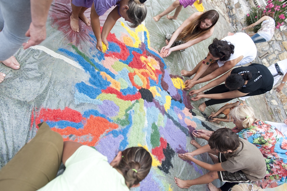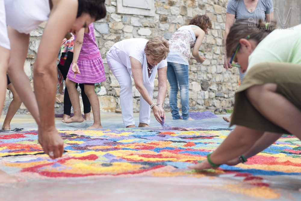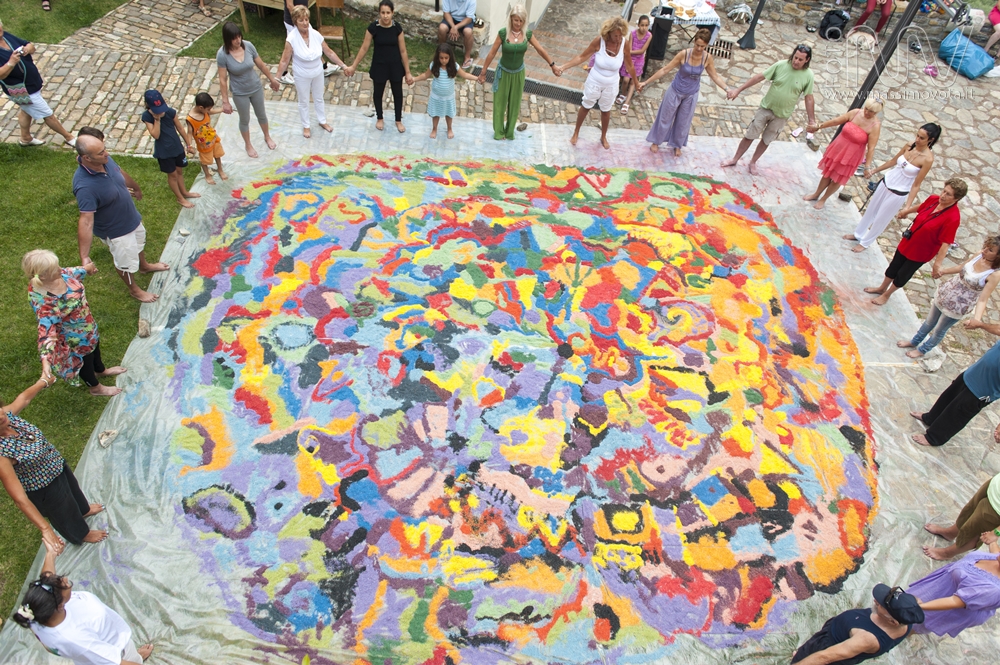 Da anni esegue mandala in luoghi pubblici, come le scuole, che sono stati poi ripetuti e portati avanti dalle sue allieve. Lei stessa l’ha imparato da una sua professoressa dell’Accademia di Brera a Milano e da allora ne tramanda l’esecuzione.