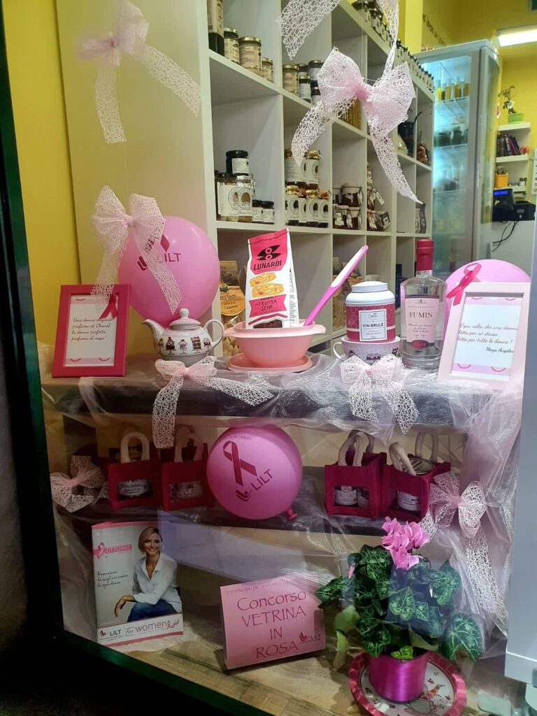 Decine le attività che hanno aderito all’iniziativa decorando le proprie vetrine con addobbi e palloncini di colore rosa per sensibilizzare la popolazione sull’importanza della prevenzione. Nei prossimi giorni sarà “eletta” la vetrina più bella.
