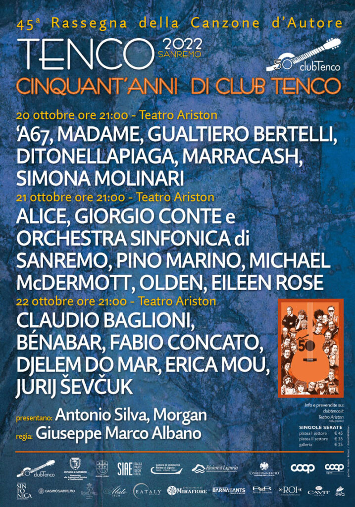Prende il via domani, mercoledì 19 ottobre, la 45ª Rassegna della canzone d’autore – Premio Tenco a Sanremo.