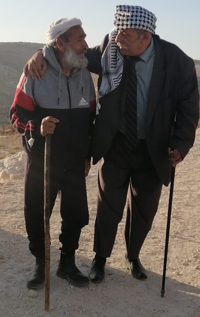 Noi, appena arrivati, abbiamo trascorso 10 giorni nel villaggio di Khalet a Dabaa, nella regione di Masafer Yatta, a Sud, nell’area C della Palestina, quella dominata amministrativamente e militarmente da Israele che dal 1948 cerca di attuare quella pulizia etnica chiesta ai suoi generali da Ben Gurion nel 1948: eliminare la popolazione araba dalla “Sua” terra.