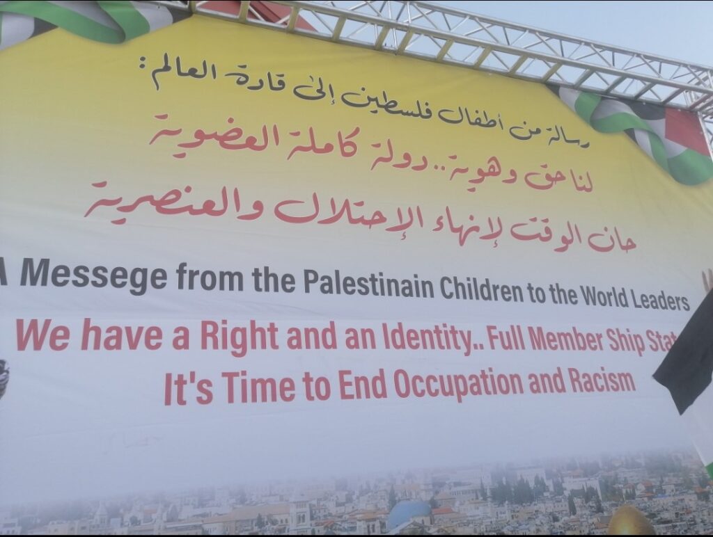 In allegato le foto di alcune, pochissime cose che vorrei raccontare, come il banner in una via centrale di Ramallah che è la voce dei bambini che chiedono di essere rispettati, perché portatori di diritti e chiedono la fine dell’occupazione e del razzismo. Questo perché i bambini, anche di 7 anni, vengono arrestati, terrorizzati anche nelle loro case dalle irruzioni notturne violente dei soldati che distruggono i mobili e portano via un loro familiare, perché sono assaliti dai coloni mentre vanno a scuola, perché le loro scuole e case vengono inondate della skunk water, quel liquido putrido che persiste per tantissimi giorni sulle persone e rimane sui mobili ed è nauseabonda…., perché tanti rimangono orfani e/o perdono i loro fratelli e sorelle incarcerati per anni, decenni….