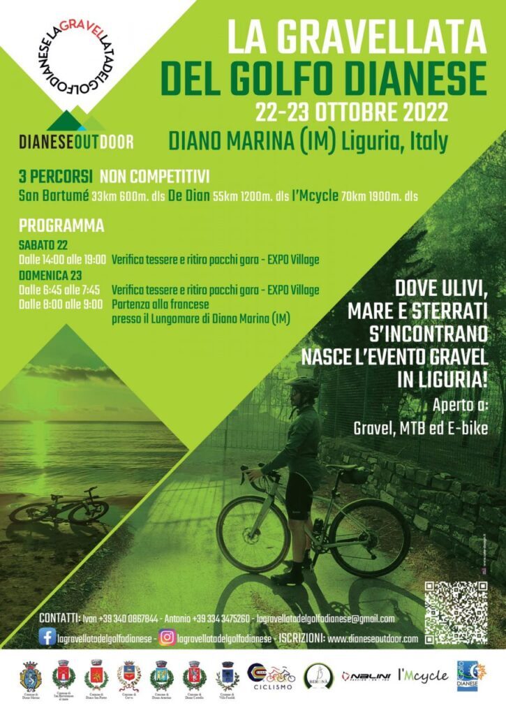 Con questo slogan , il 22 e 23 Ottobre si svolgerà la Gravellata del Golfo Dianese, la manifestazione ciclistica non competitiva per biciclette gravel, mountainbike ed e-bike. Oltre 100 iscritti, sette comuni coinvolti, 30 paesi attraversati, 3 percorsi, questi sono solo alcuni numeri dell’evento “fuori stagione” organizzato dall’associazione sportiva Dianese Outdoor presieduta da Ivan Torrero, un’associazione che ha come obiettivo la promozione, la valorizzazione e lo sviluppo delle iniziative outdoor sul territorio nel Golfo Dianese, un evento che si preannuncia un grande successo.