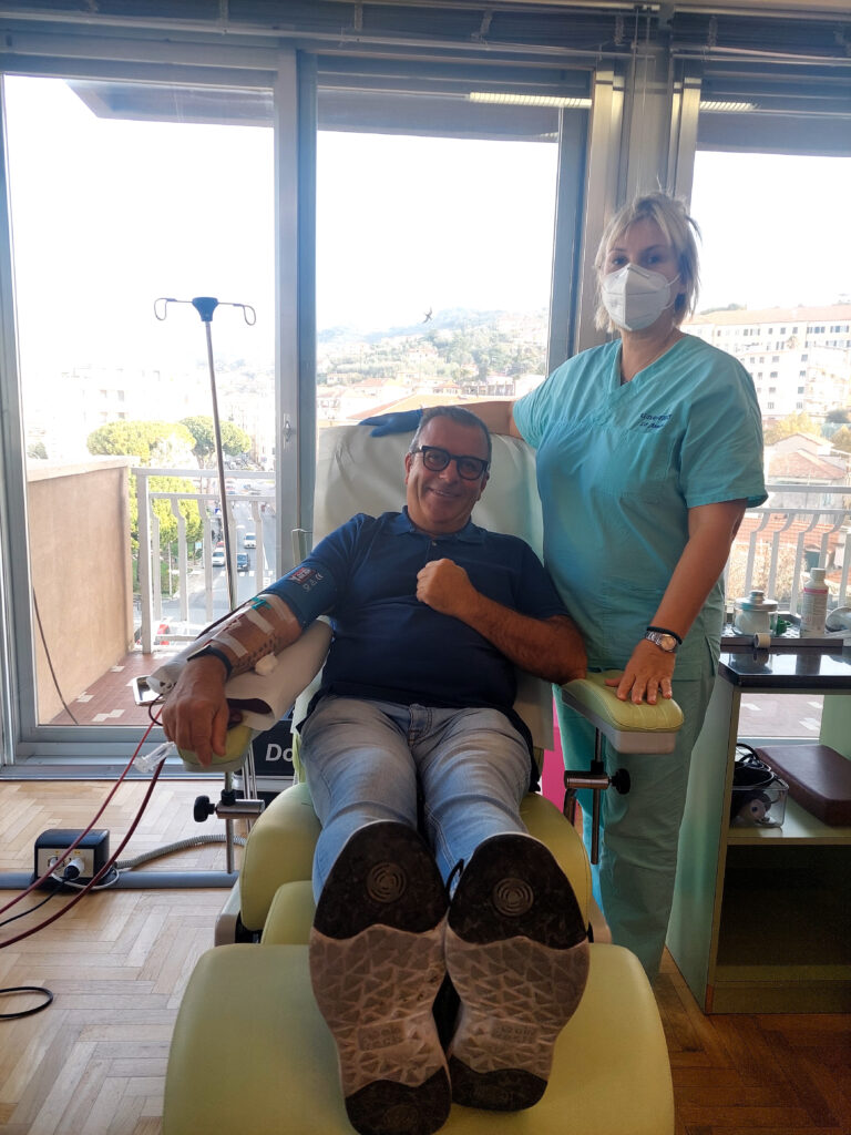 Questa mattina alle ore 7,30 si è presentato il primo donatore che ha donato per la 101esima volta il plasma e oggi ha voluto essere il primo paziente dell’UdR di Imperia.
