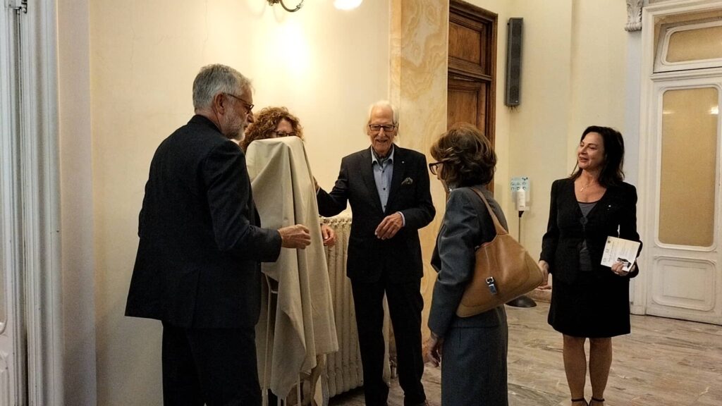 Spiega il presidente della Provincia Claudio Scajola: “Il maestro Lentini, che è un’eccellenza della scultura italiana e abbiamo il piacere di averlo come nostro concittadino, perché è del nostro entroterra, della vallata di Ventimiglia, ha apprezzamenti ovunque e ha voluto regalare al Palazzo del Governo questa sua scultura, proprio come ricordo del rapporto storico che ci deve essere fra la cultura, la popolazione e le Istituzioni. Quindi, una buona occasione, con una scultura di pregio che vedremo collocata nell’atrio del Palazzo della Provincia”.