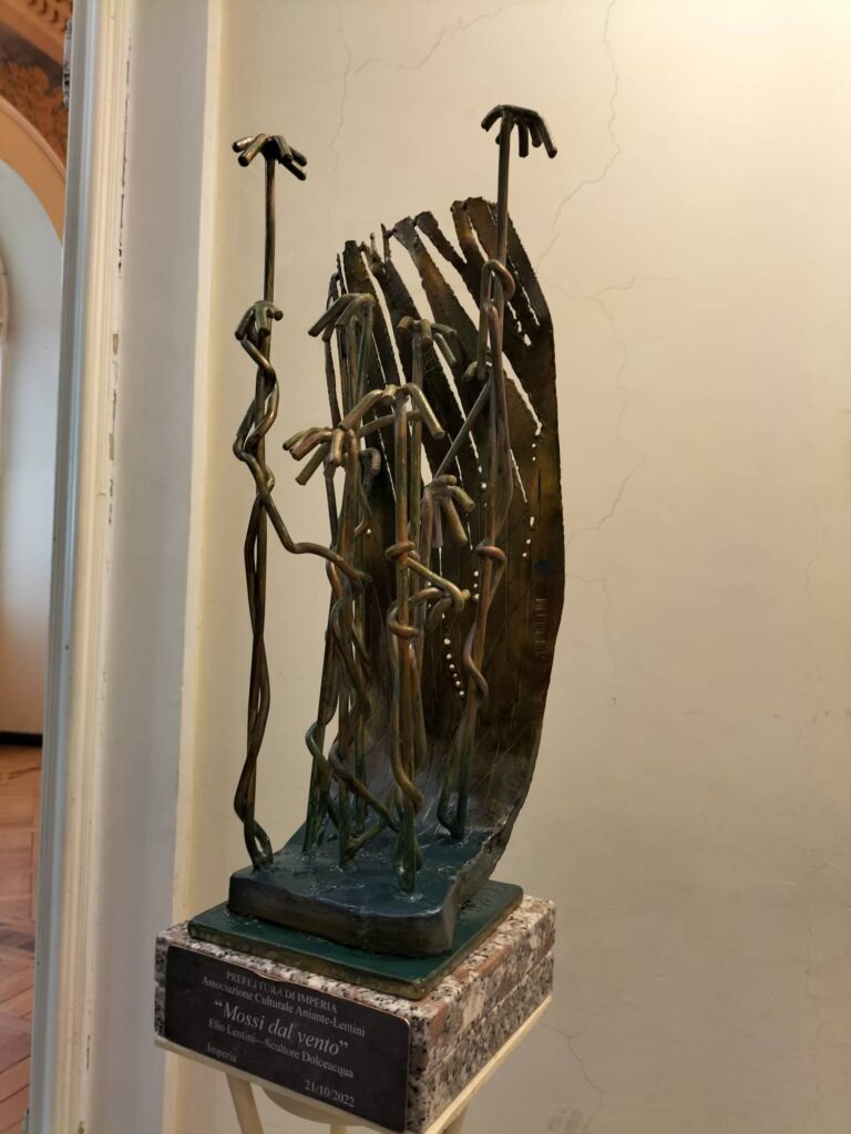 Sottolinea il maestro Elio Lentini: “Il soggetto risale a un momento particolare. E’ una scultura che già era nel mio pensiero, in quanto avevo già avuto modo di parlare con il prefetto di Imperia Nanei, per realizzare questo incontro. Questo per me come artista e come uomo è molto importante in quanto ho sempre avuto molti riconoscimenti al di fuori dell’ambiente in cui producevo e in cui vivevo e tuttora vivo, perciò questa cosa di oggi è determinante per me personalmente, perché mi rialza e porta ancora più in profondità le mie esperienze”.