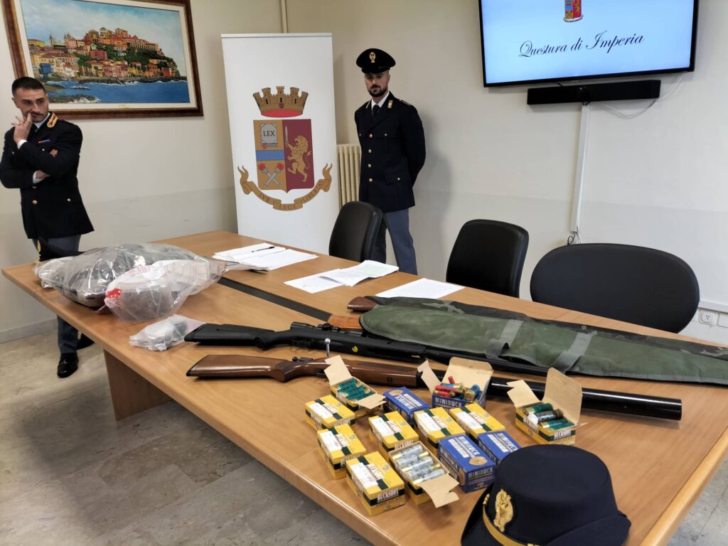 Le perquisizioni seguite agli arresti della mattinata odierna hanno portato al sequestro di circa tre kg di sostanza stupefacente, di fucili illegalmente detenuti e di una serra, nell’entroterra di Ventimiglia, con strumentazione idonea alla coltivazione della droga.