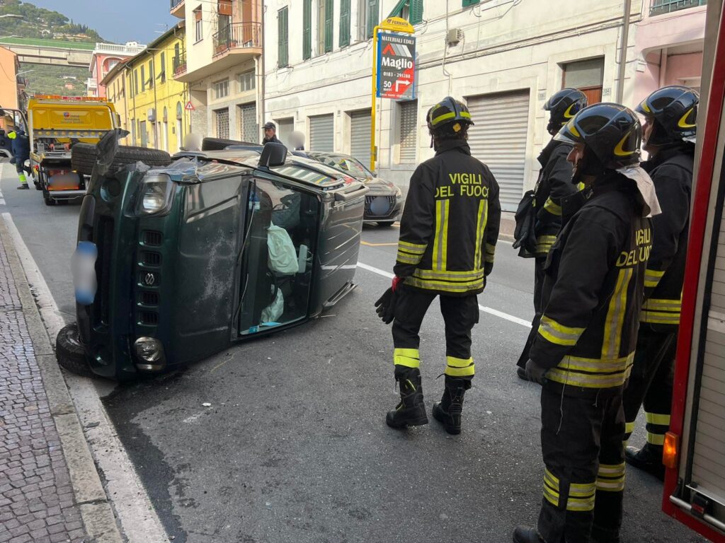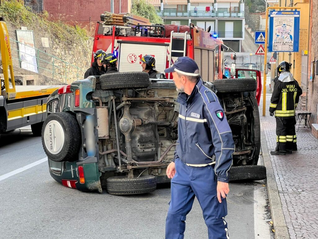 Un fuoristrada si è ribaltato questa mattina in via Nazionale a Imperia. Alla guida un uomo di 79 anni rimasto ferito in modo lieve e trasportato al Pronto soccorso.