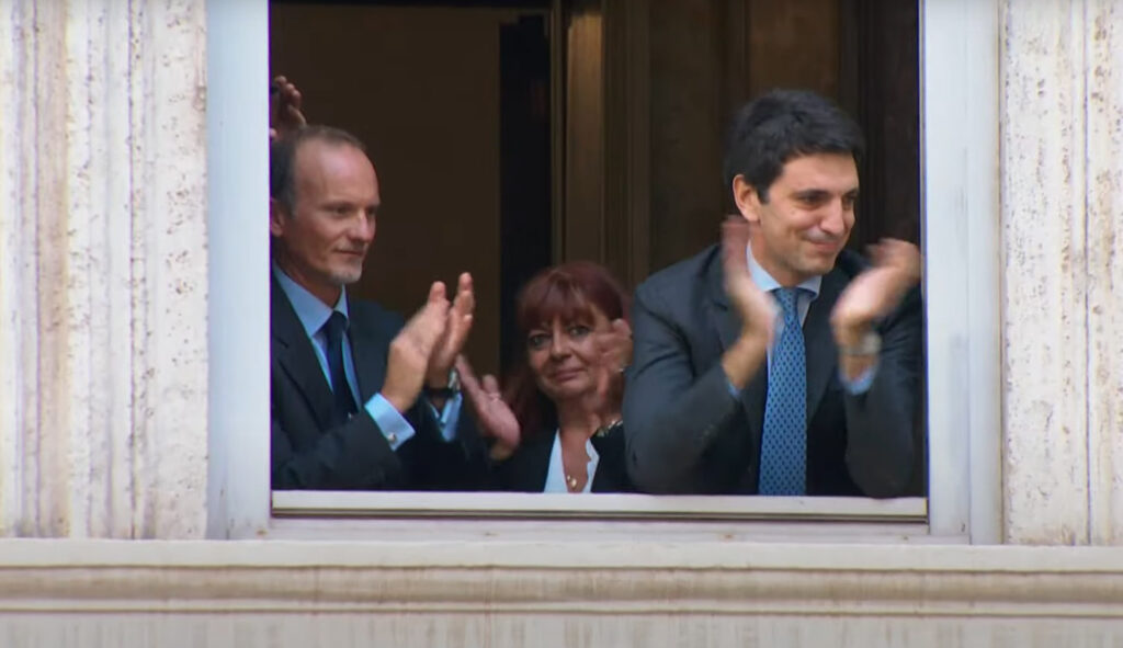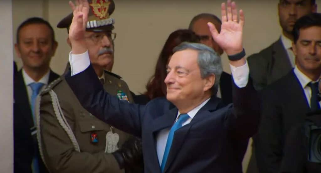 L’ex Premier Mario Draghi, dopo aver passato in rassegna il picchetto d’onore, ha ricevuto gli applausi di alcuni dipendenti di Palazzo Chigi, affacciati alle finestre.