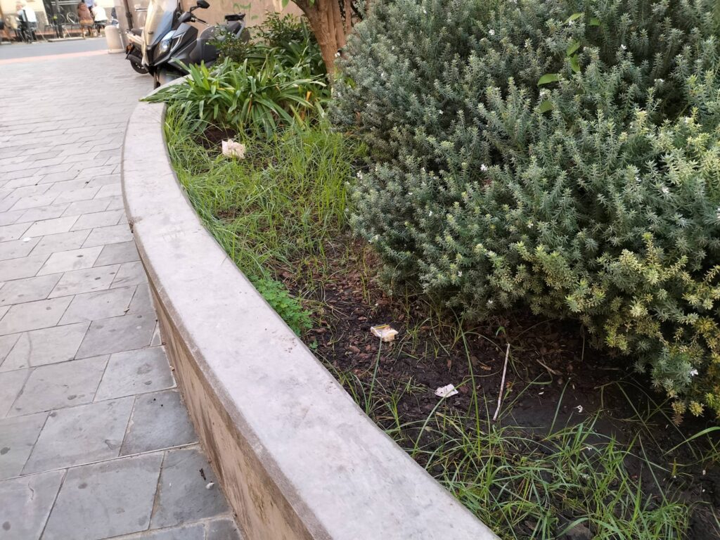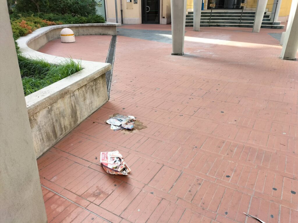 Deiezioni canine, cartacce e sporcizia. È il triste spettacolo che si può ammirare a pochi metri da Piazza Dante e più precisamente nel parchetto dietro la Camera di Commercio di Imperia.