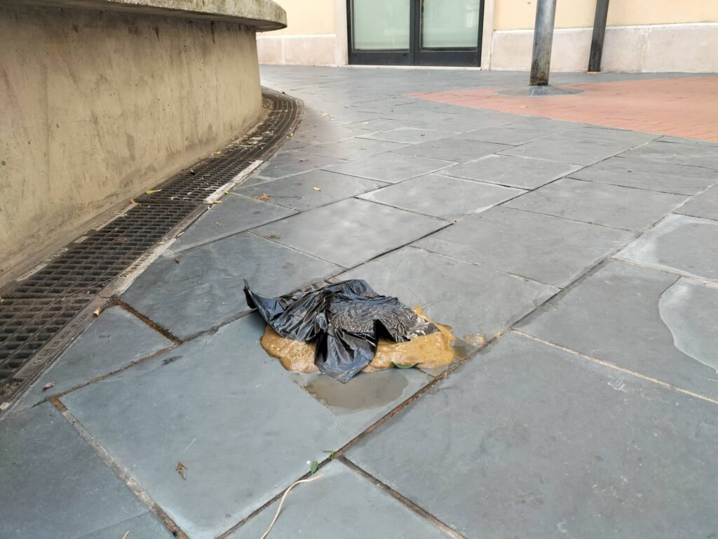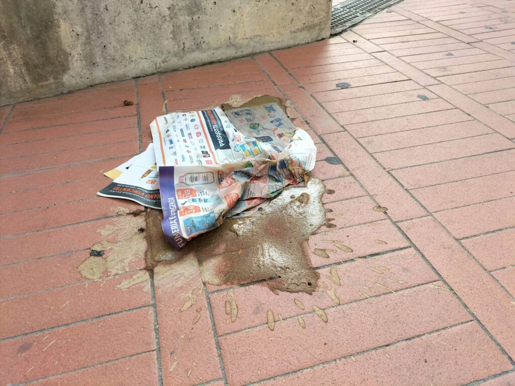 “Ogni mattina c’è uno o più nuovi ‘regali’ – fa sapere una nostra lettrice – ma stamattina non potevo far finta di nulla. Ho segnalato la situazione anche alla De Vizia, sperando mandino qualcuno a ripulire anche se non è certo loro responsabilità la nostra inciviltà”.