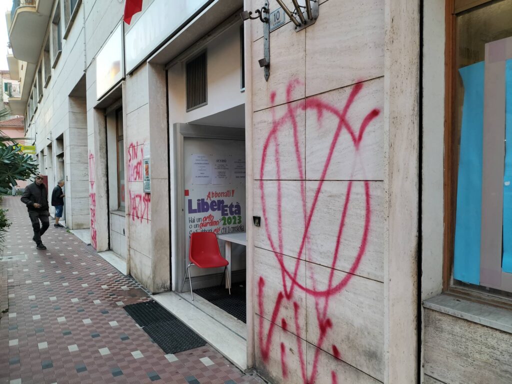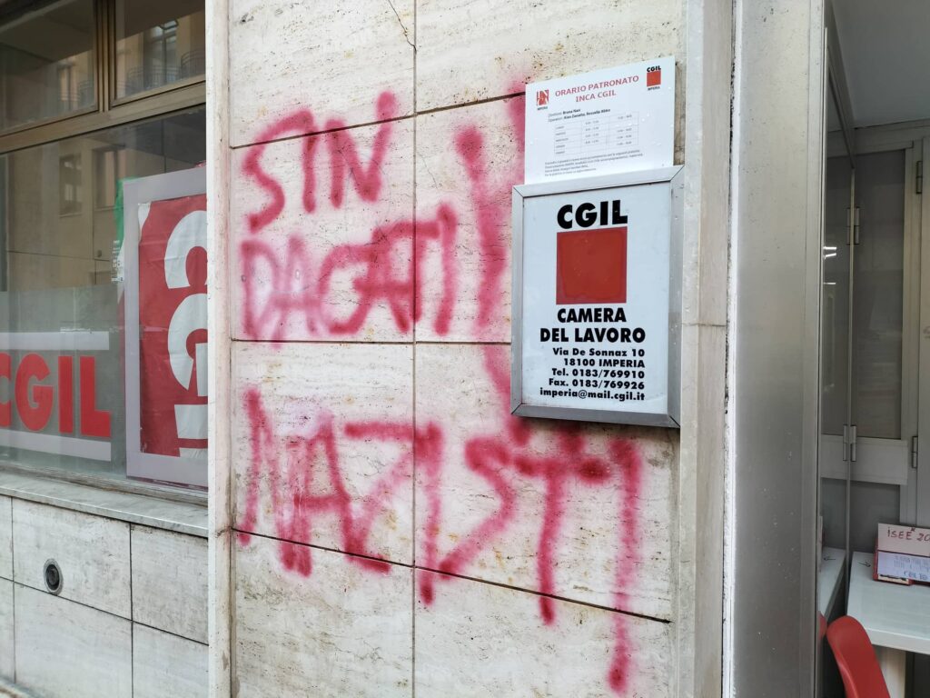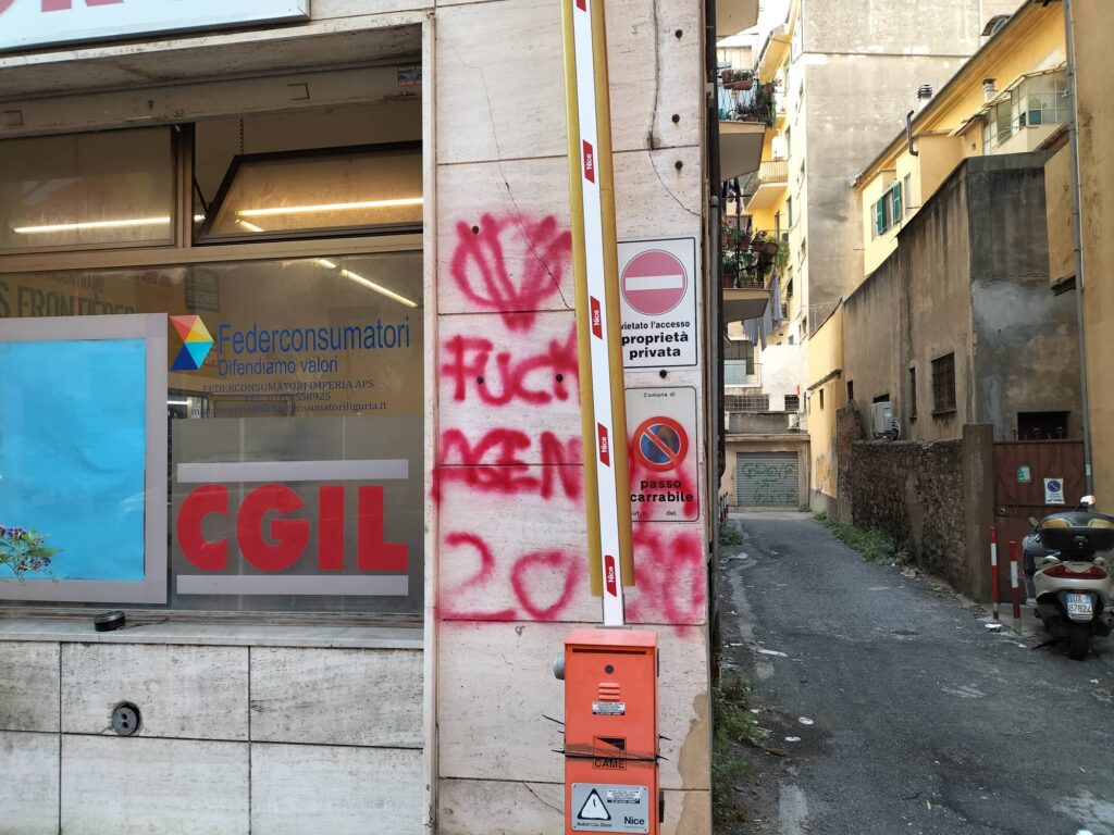 La sede della CGIL di Imperia, nuovamente imbrattata con scritte ingiuriose. A distanza di alcuni mesi dall’ultimo atto vandalico, questa mattina l’amara sorpresa per i sindacati.