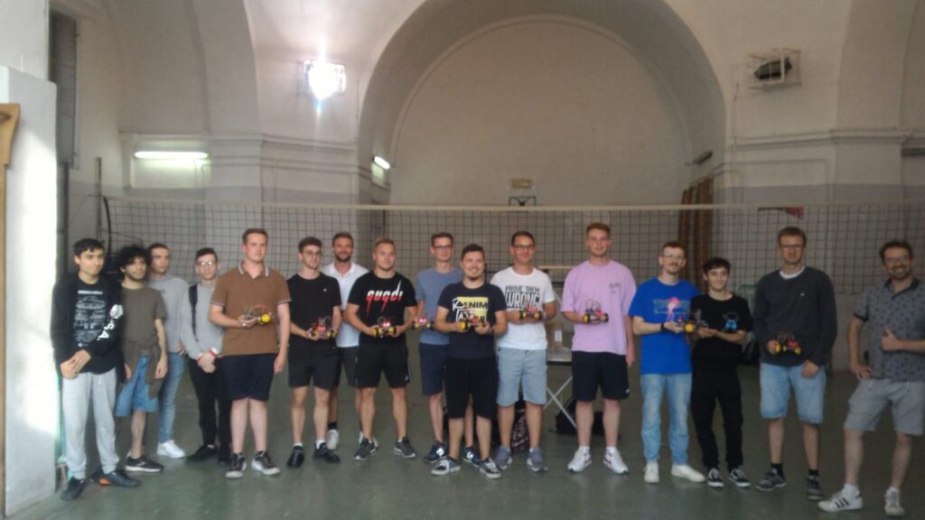 I ragazzi, suddivisi in coppie di diversa nazionalità, hanno collaborato alla realizzazione di 12 esemplari di robot in grado di muoversi autonomamente all’interno della scuola utilizzando un radar acustico per determinare il percorso libero e orientarsi quindi nel piano. Ogni gruppo ha realizzato il proprio esemplare utilizzando una piattaforma Arduino e un telaio dotato di due ruote motrici ed una terza di stabilizzazione.