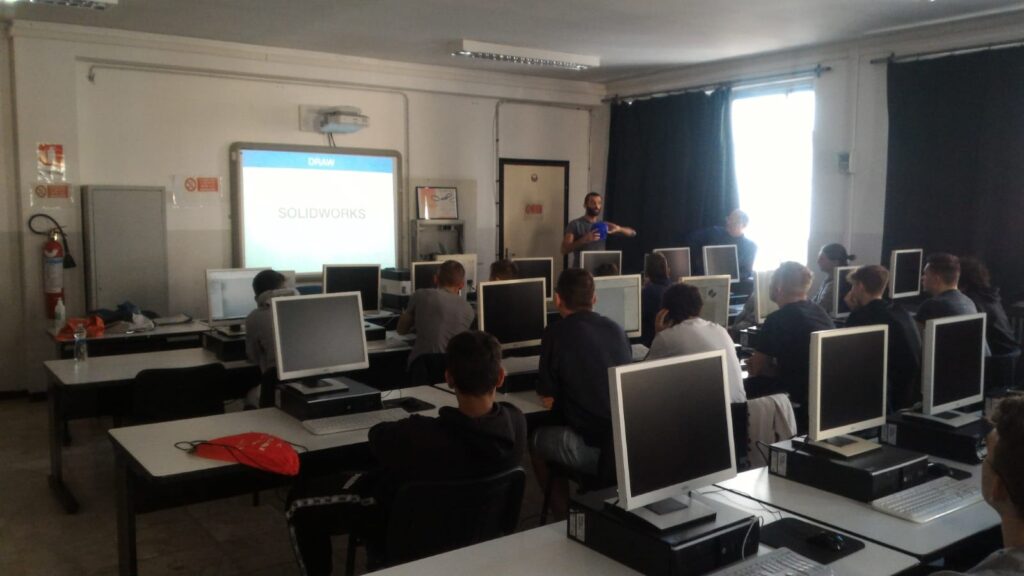Gli studenti all’interno dell’aula di informatica della sede di Imperia hanno avuto la possibilità di seguire un workshop sulla modellazione e stampa 3D (prototipazione rapida), in lingua inglese, tenuto da un docente del corso Tecnico Meccatronico che da tempo insegna queste nuove metodologie produttive. Durante il seminario è stato utilizzato un software di modellazione professionale, che i ragazzi del corso imparano ad utilizzare già nel primo biennio e permette loro di acquisire competenze pratiche direttamente spendibili nel mondo del lavoro.