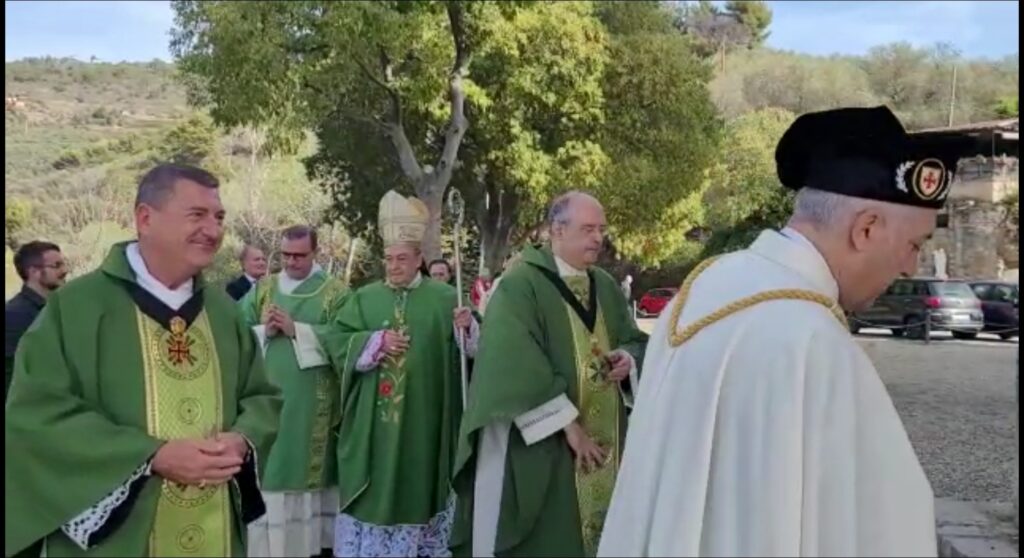 In onore di Maria Regina della Palestina, patrono dell’Ordine Equestre del Santo Sepolcro di Gerusalemme, è stata Celebrata la SS. Messa solenne al Santuario di Montegrazie di Imperia, presieduta dal Vescovo emerito di Savona Monsignor Vittorio Lupi, concelebrata dal Vicario Generale della Diocesi di Albenga-Imperia Monsignor Bruno Scarpino e da Don Fabrizio Gatta della Diocesi di Ventimiglia-Sanremo, entrambi appartenenti all’ Ordine Equestre del Santo Sepolcro di Gerusalemme.