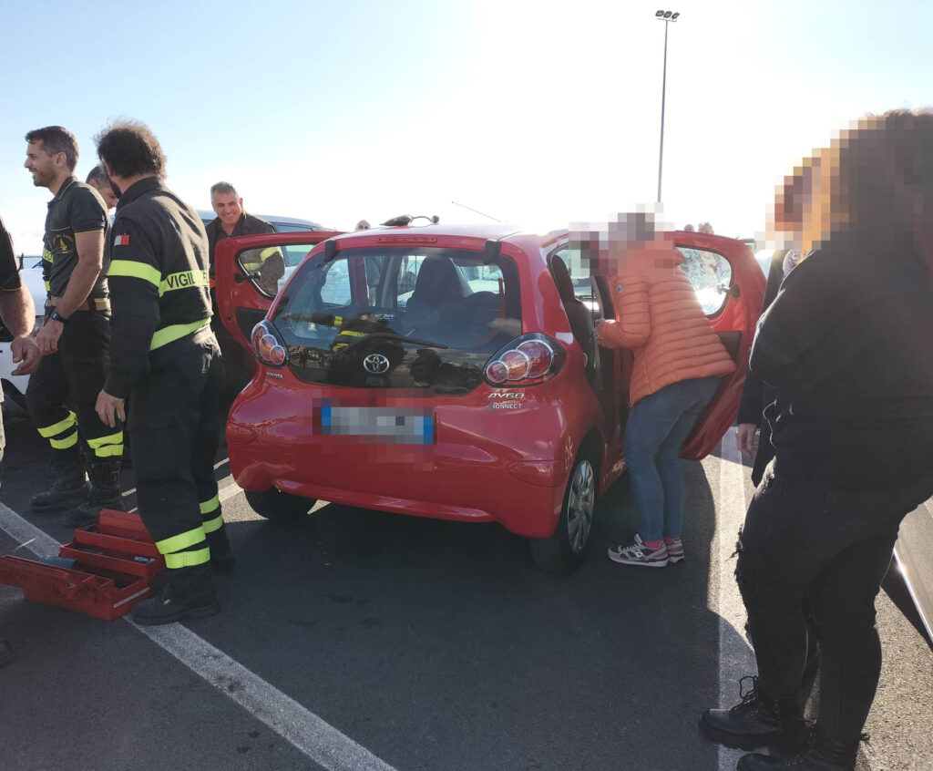 Dopo alcuni tentativi, i Pompieri, con l’aiuto di un meccanico in pensione intervenuto per dare una mano, sono riusciti a far leva sul finestrino posteriore e ad aprire l’auto, liberando la piccola.