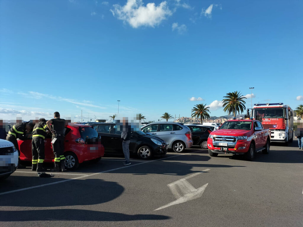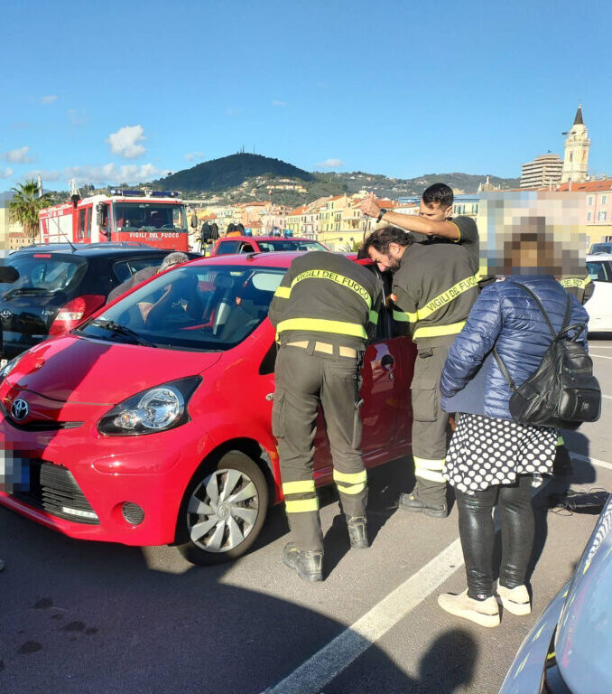 Risultati vani i tentativi per aprire l’auto, le cui chiavi erano rimaste dentro l’abitacolo, sul posto sono intervenuti i Vigili del Fuoco di Imperia.