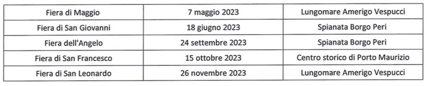 Imperia: stilato il calendario delle Fiere 2023