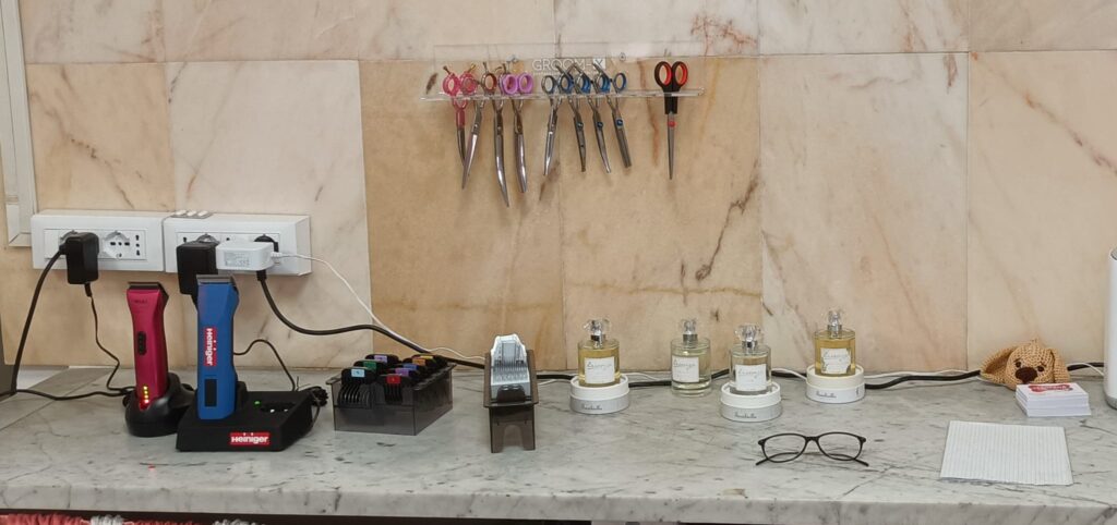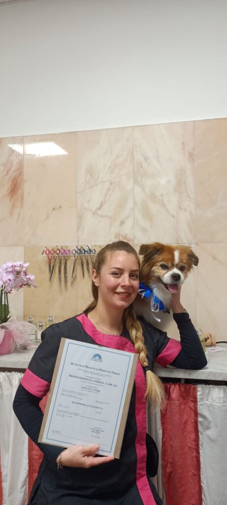 Seguendo un corso pratico da una toelettatrice professionista della riviera ligure, nonché una persona meravigliosa, ho appreso l’approccio corretto con gli animali, come farli sentire a proprio agio e soprattutto come eseguire ogni trattamento”.