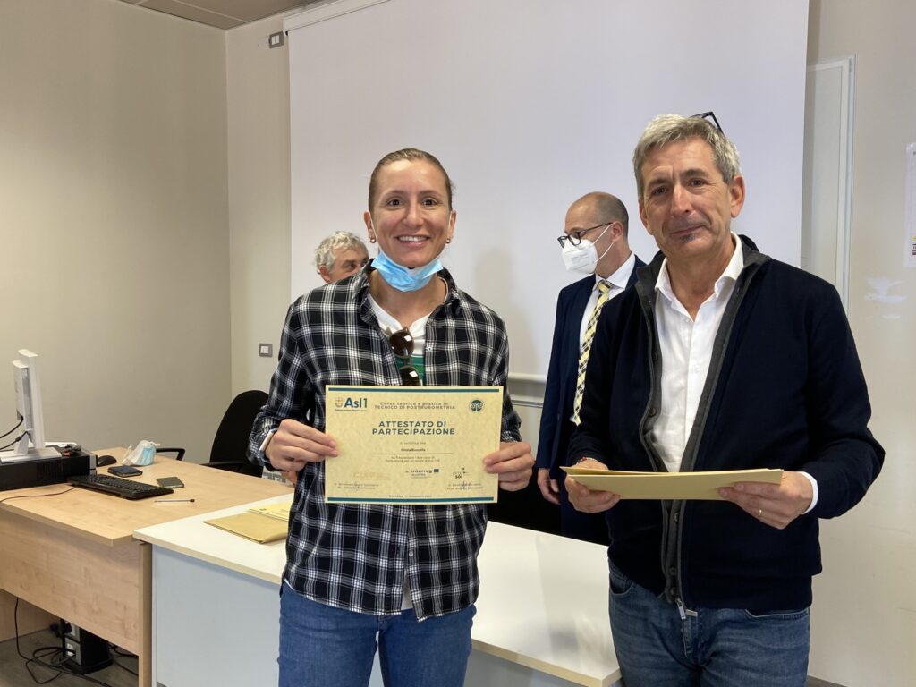Si è tenuta nel pomeriggio odierno la cerimonia di consegna, alla presenza del DSS di Asl1 Dott. Roberto Predonzani e del DS di Asl1 Dott. Carlo Alberto Paolo Tersalvi, degli attestati ai venti corsisti che hanno partecipato, con profitto, al corso universitario in tecnico di Postumetria in collaborazione con l’Università dell’Insubria.