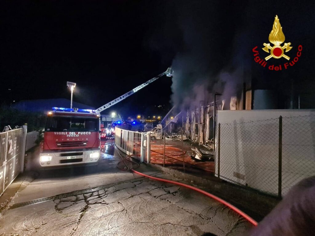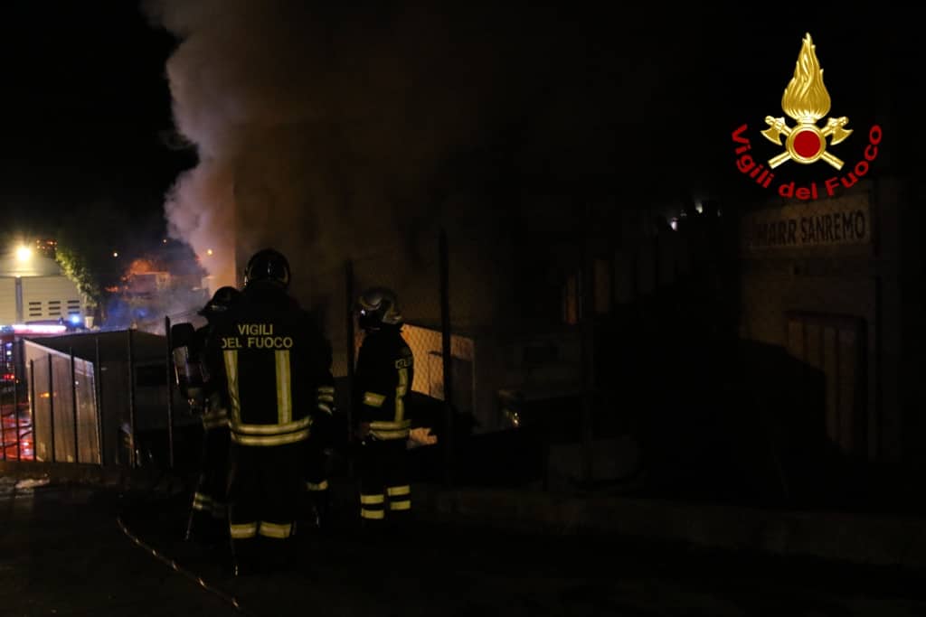 Un incendio divampato questa notte ha devastato la sede della ditta Marr di Taggia, in via Periane.