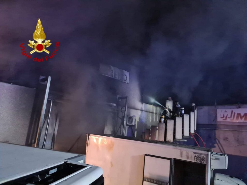 Il rogo ha completamente distrutto la sede della Marr, società, con sede principale a Rimini, che si occupa della distribuzione di alimenti in bar e ristoranti.