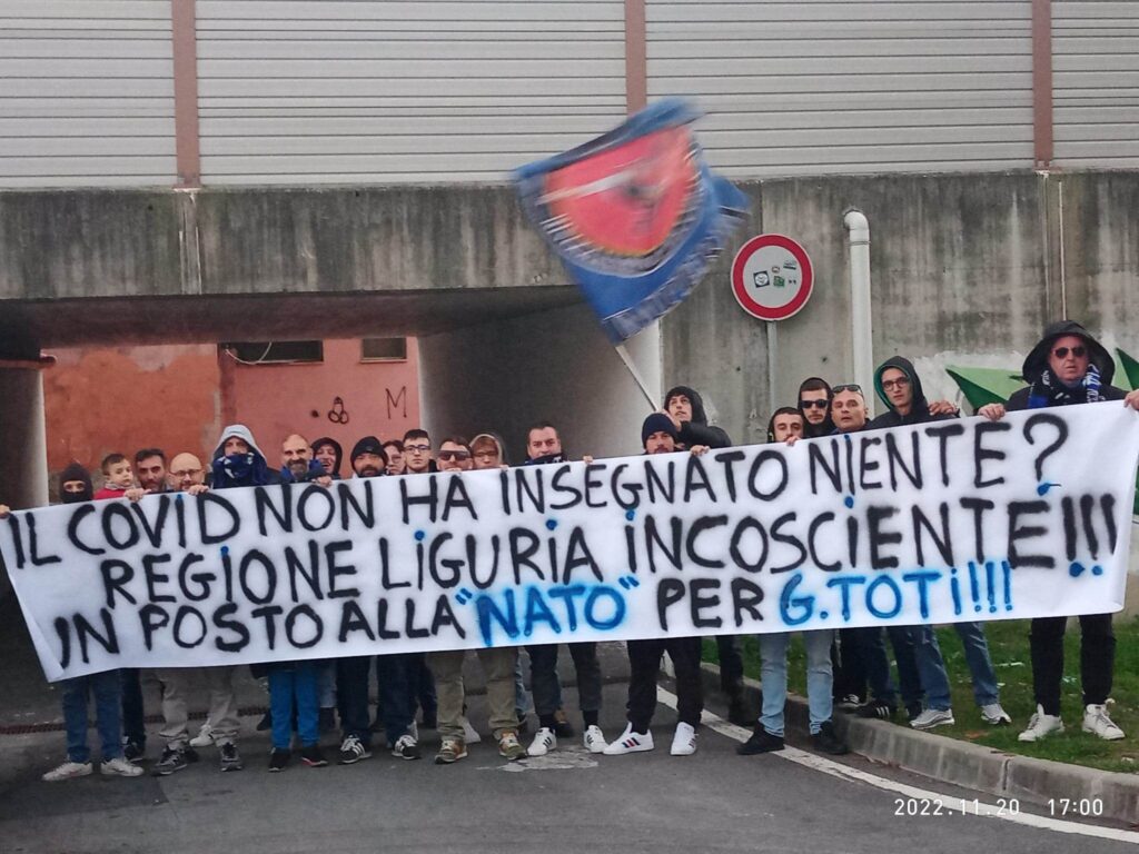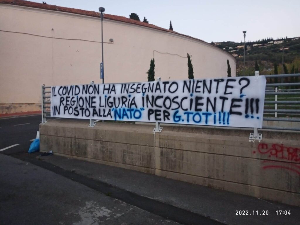 “Il Covid non ha insegnato niente? Regione Liguria incosciente! Un posto alla “Nato” per G. Toti“. Questo il testo dello striscione che gli Ultras dell’Imperia avrebbero voluto esporre oggi sulle gradinate del Ciccione, in occasione della partita contro la Lavagnese.