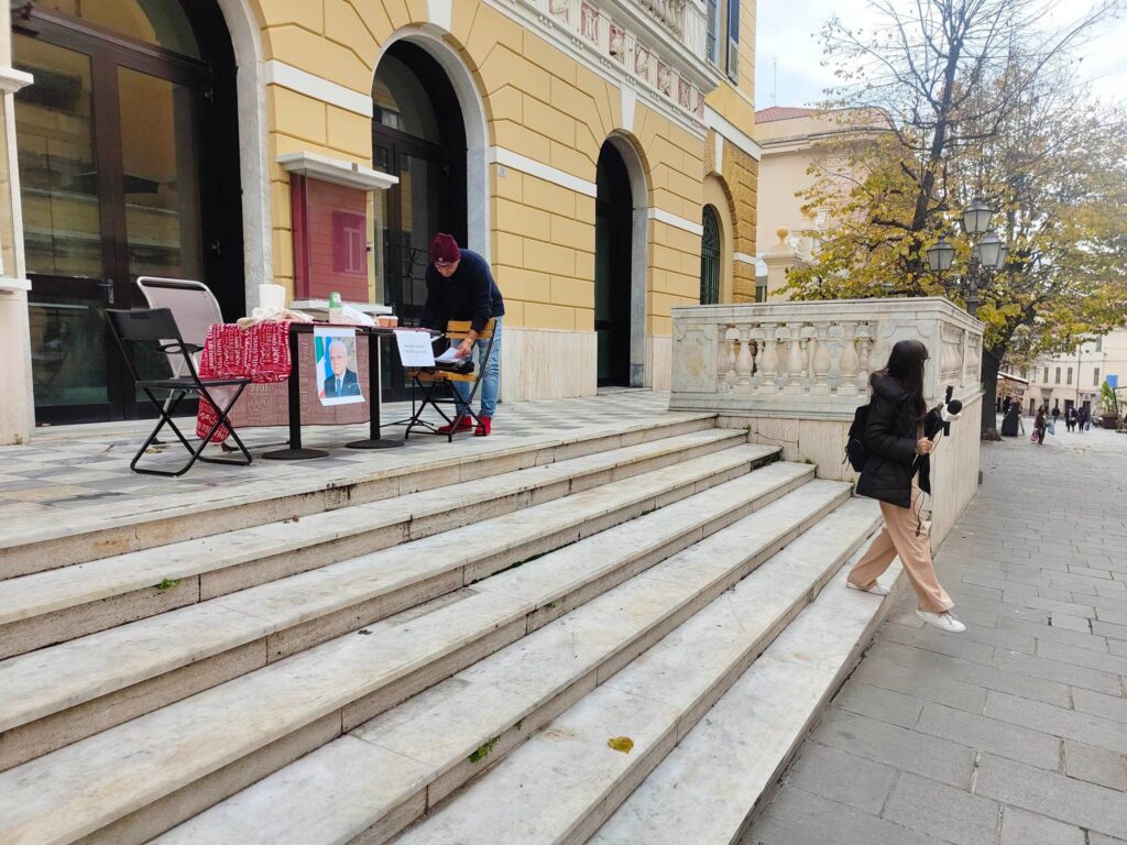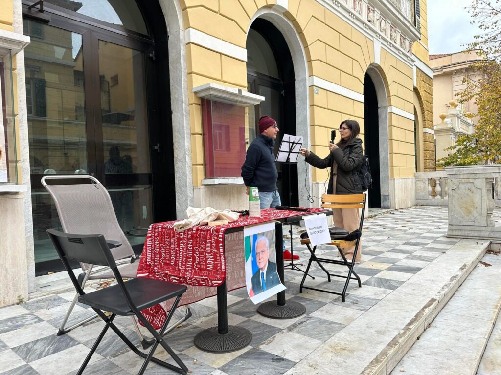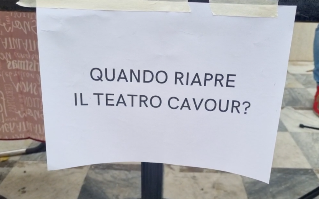 Oggi davanti al Teatro Cavour, a distanza di 7 anni dall’ultimo spettacolo, si è tornati a respirare cultura, seppur per un’ora soltanto, grazie alla presenza di un attore che ha recitato alcuni monologhi per tutti i passanti in via Cascione.
