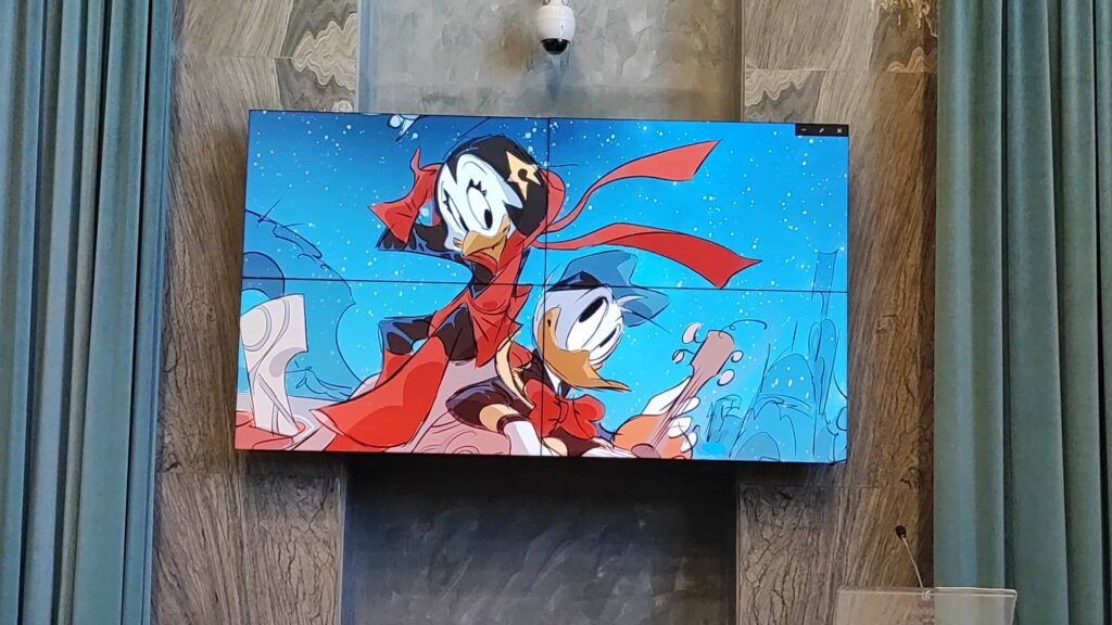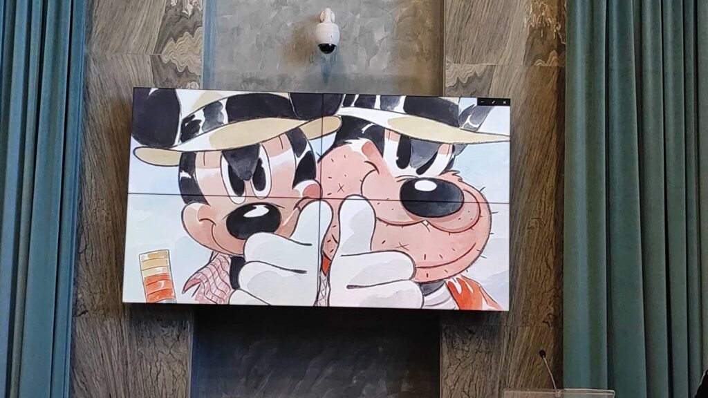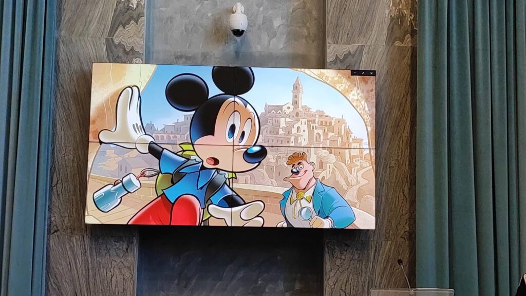 Dice Stefano Zanchi: “Per me è un onore essere qui oggi, in questa giornata così importante per Imperia ed è anche un valore aggiunto al mio lavoro. Sono molto soddisfatto e molto contento. Topolino è una passione che si è rivelata ormai undici anni fa, perché io disegno Topolino ormai da undici anni e mi trasmette l‘amore per il fumetto.
