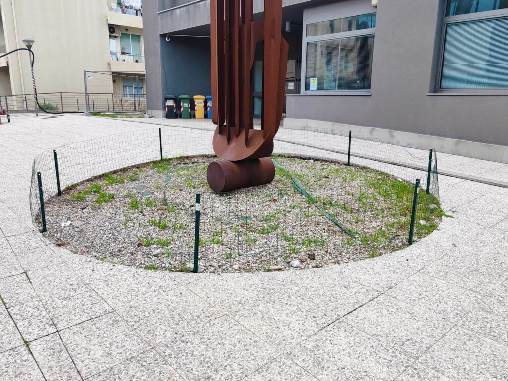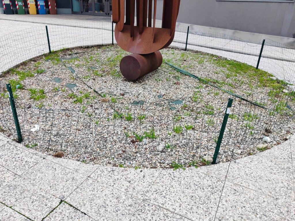 Il personale degli uffici collegati al vicino Tribunale aveva deciso di recintare l’aiuola poichè molte persone la utilizzavano per portare i propri cani a espletare i propri bisogni. Dopo pochi giorni la rete era stata già divelta e l’aiuola era stracolma di escrementi.
