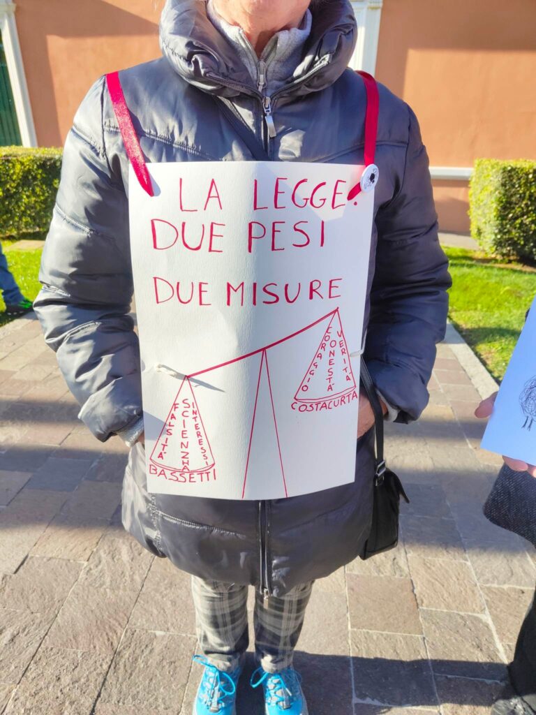 “Sono stato denunciato per minacce gravi da Bassetti, che ci ha chiamati ‘no vax e analfabeti funzionari’, a nostro modo di vedere una discriminazione. – afferma uno degli attivisti, Diego Costacurta –Le indagini a mio carico sono terminate in un lampo. Oggi siamo qua per rivolgere una domanda al Procuratore. Quanti casi chiusi in appena 20 giorni ci sono a Imperia? Le indagini possono durare fino a 6 mesi, con possibilità di proroga di ulteriori 6 mesi. Molto spesso gli inquirenti utilizzano tutti i 12 mesi. Perché in questo caso in soli 20 giorni l’inchiesta è stata chiusa? Vogliamo delle risposte”.