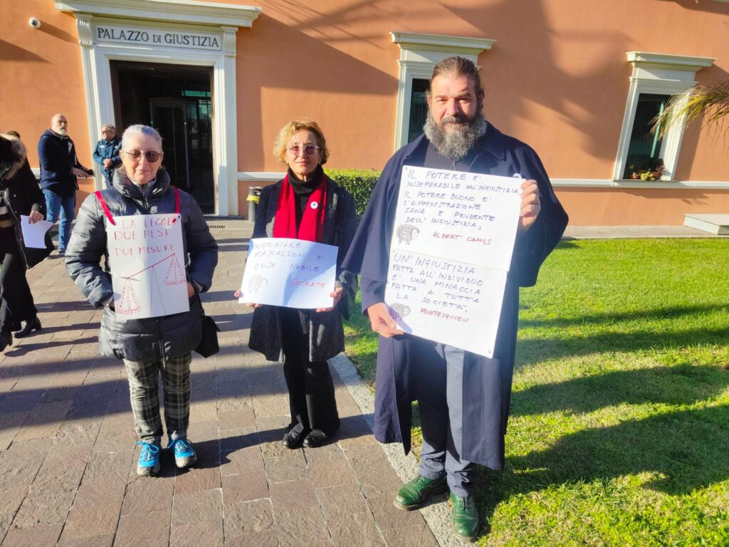 Nuovo sit in di protesta, ieri mattina, 30 novembre, davanti al Tribunale di Imperia, da parte degli attivisti del gruppo “Pecora Nera”, facente parte del Comitato di Liberazione Nazionale. Il gruppo ha aderito all’iniziativa “Duran Adam” fondata sulla protesta silenziosa e la disobbedienza civile.